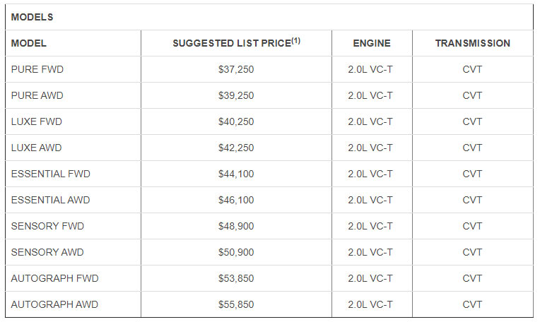 The 2020 QX50 is slated to arrive at dealerships this fall and pricing starts at $37,250 – a slight increase of $600.