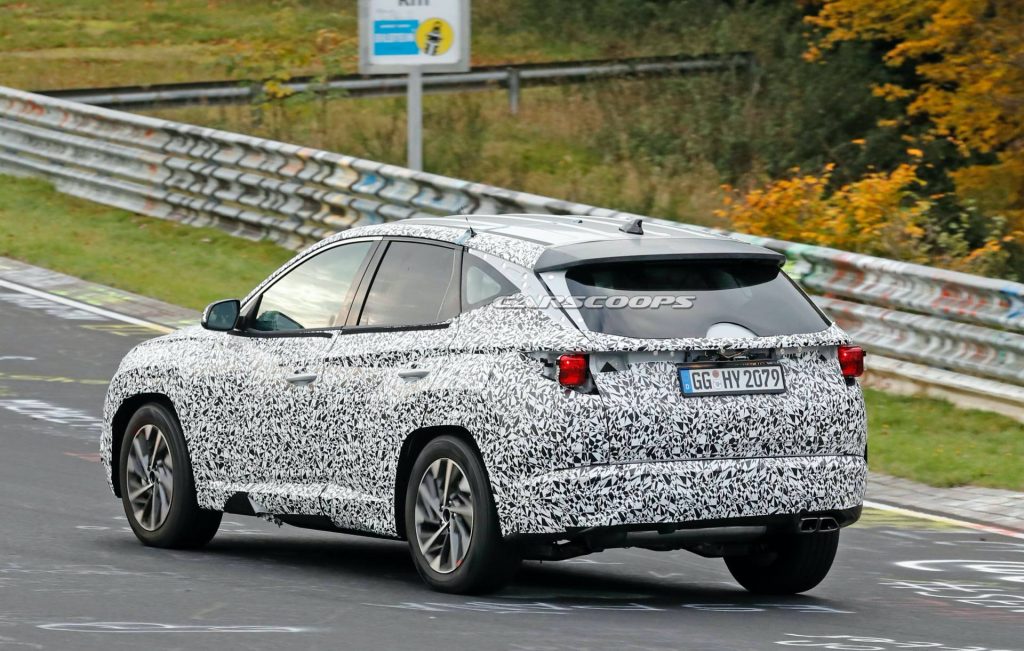 Seen here at the Nürburgring Nordschleife (yes, even compact family crossovers without the slightest pretense of sportiness have to go through the Green Hell ordeal), the 2021 Tucson drops most of its padded camo, giving us a clearer look at its silhouette.