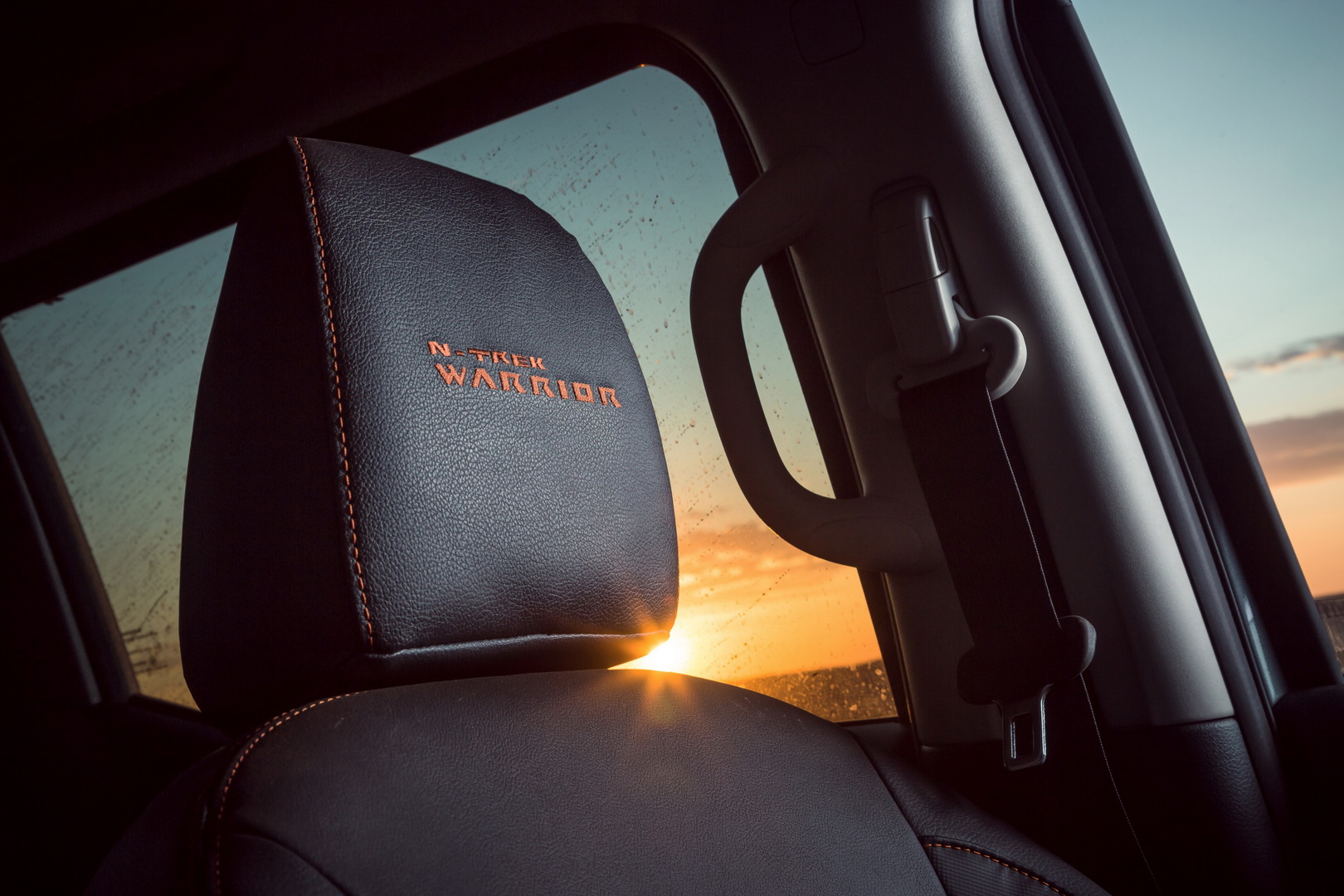 To separate itself from the other models in the range, the 2020 Navara N-Trek Warrior comes with reworked bumpers, plastic add-ons, body-colored steel bull-bar, 3 mm (0.1 in) stainless steel front underbody protection, integrated 470 mm (18.5 in) LED light bar and full-size spare wheel and tire, with underbody accommodations to make it fit. It also gets dark orange accents around the fog lamp bezel surrounds and side mirror caps, decals on the lower parts of the doors and tailgate.
