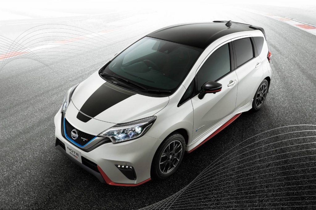 As the name suggests, it’s a special edition treatment that can be applied to the Note e-Power Nismo, Note e-Power Nismo S, and Note Nismo S. The package is designed to give the Note Nismo an even sportier appearance courtesy of a black hood stripe, black roof, as well as black exterior elements including the shark fin antenna, roof spoiler, and side mirrors.
