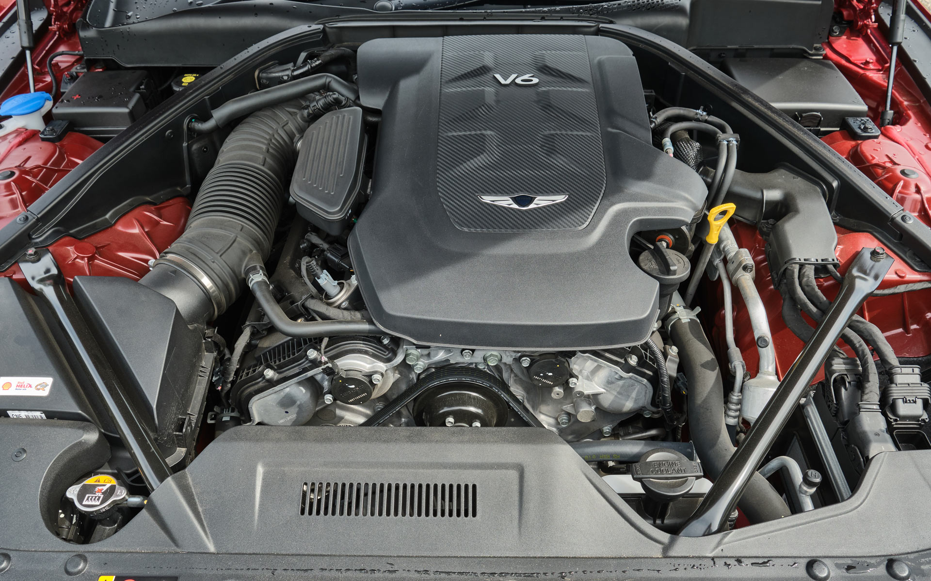 Our test car was equipped with a 3.8-liter naturally aspirated V6 delivering 311 HP and 397 Nm (292 lb-ft). That latter figure is more impressive than the first, yet neither are all that exciting when you consider that some other markets get a 5.0-liter V8 with 419 HP and 520 Nm (383 lb-ft) as well as the 3.3-liter twin-turbo V6 of the G70 and Stinger with 364 HP and 510 Nm (376 lb-ft). Aussie models see the 3.8 engine coupled to an eight-speed automatic transmission sending power to the rear wheels.