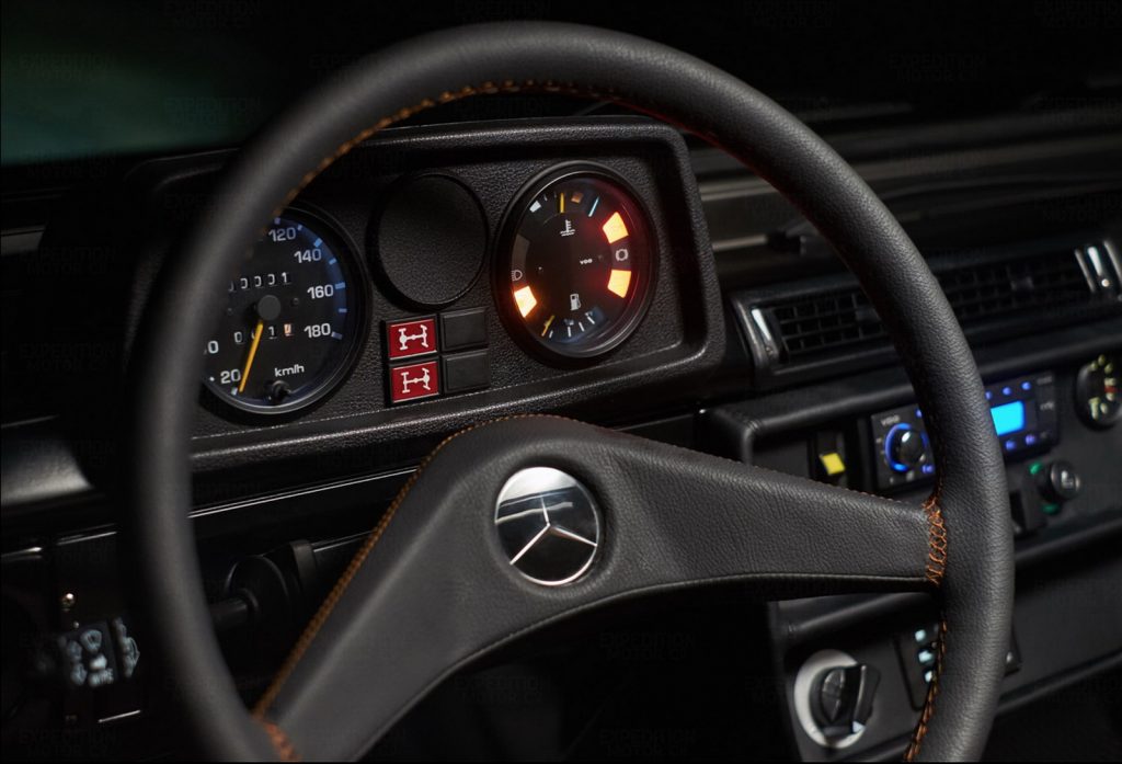 The original -and indestructible- OM602 2.5-liter five-cylinder diesel engine is retained after receiving a full rebuild with new pistons, seals, timing belt, water pump, and other components. The radiator is re-cored to work again as new and the stock 5-speed manual transmission is also disassembled, cleaned and refreshed with new seals, new clutch and new throw-out bearing, while the transfer case is also overhauled.