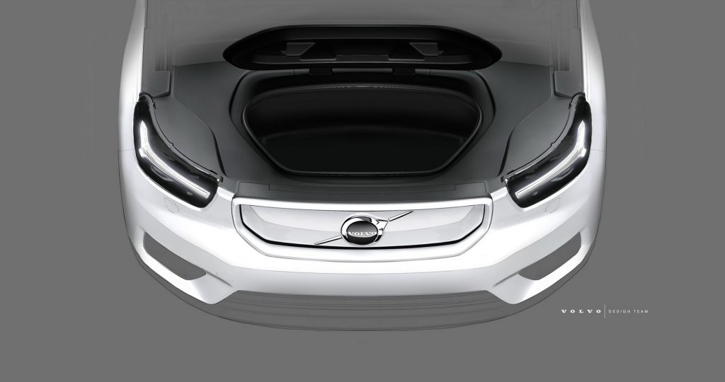 Volvo has released the first official sketches of its forthcoming battery-electric XC40 compact SUV, the Swedish automaker’s first production EV.
