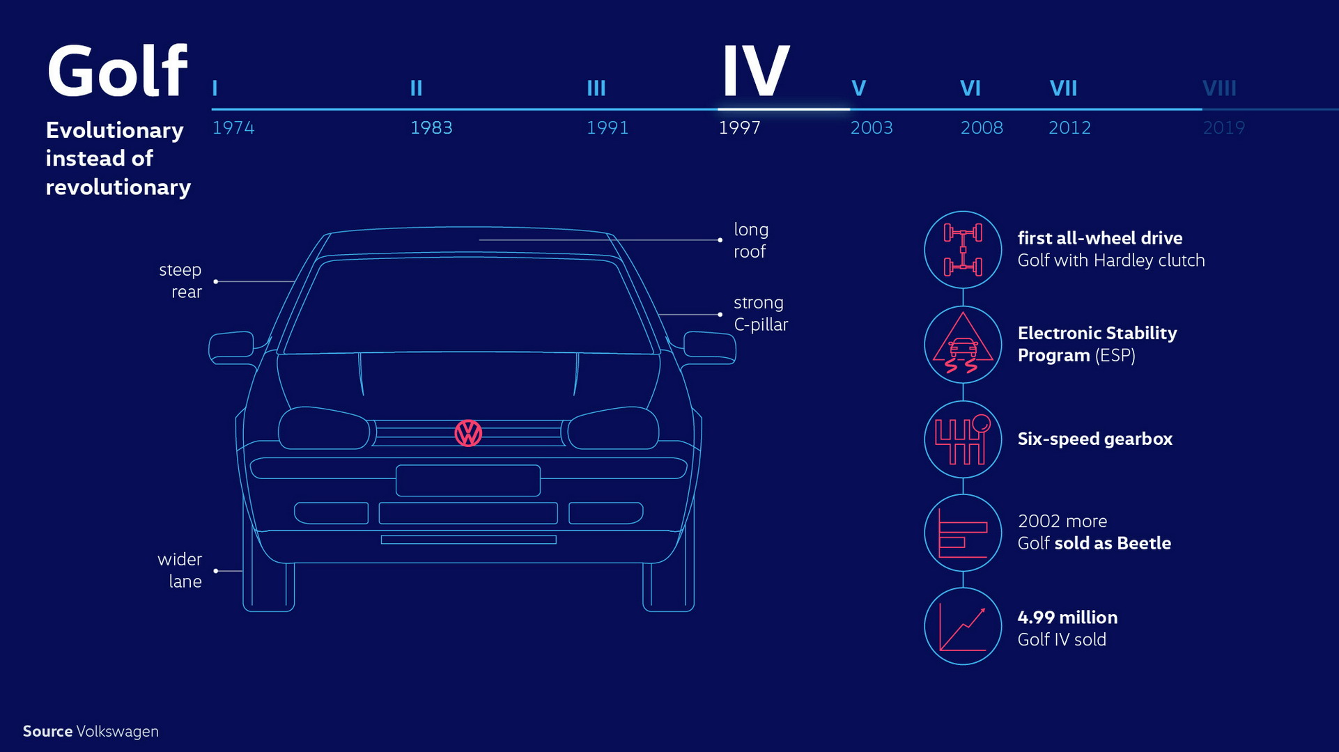 In the end, the Mk4 will go down as one of the most important generations ever. It was the first Golf to face serious competition in the C-segment thanks to Ford and Opel launching the 1st-gen Focus and 2nd-gen Astra, respectively, in 1998. By the time production on the Mk4 ceased, Volkswagen had put 4.99 million units on the road.
