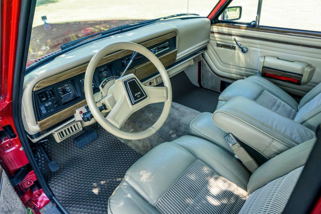 Aside from the engine swap and related modifications, this 1989 Grand Wagoneer is completely original and unrestored. That’s impressive considering the exceptional condition it seems to be in, from the Bright Red rare factory color to the attractive contrasting interior featuring Light Tan leather and cloth.