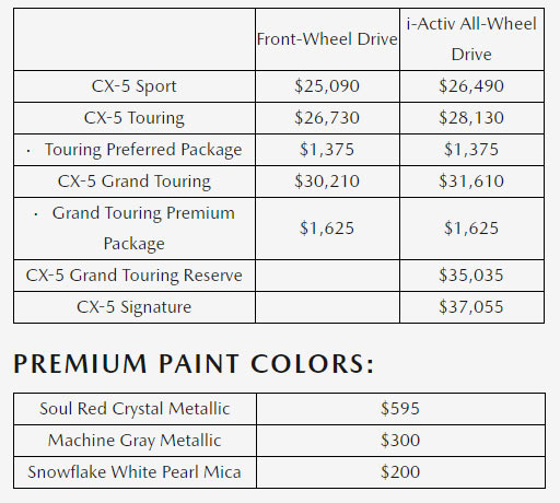 The entry-level CX-5 Sport starts at $25,090 which makes it $740 more expensive than its predecessor. That’s a significant jump, but buyers will find additional content including a suite of i-Activsense driver assistance systems.