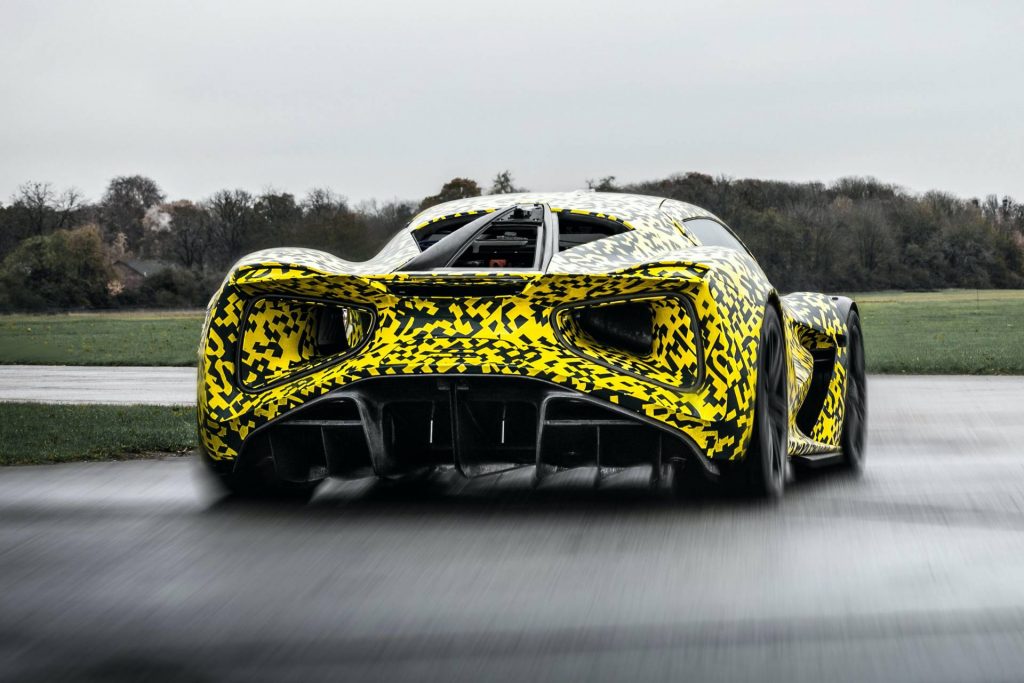 The Evija prototype retains the shape of the concept but is completely covered in camouflage, suggesting that the production version might be slightly different from the car Lotus has shown at Pebble Beach and, more recently, in Dubai. We can’t spot any significant changes, however, with the exception of the headlights which don’t seem to feature LEDs – but we guess these aren’t the finished items.