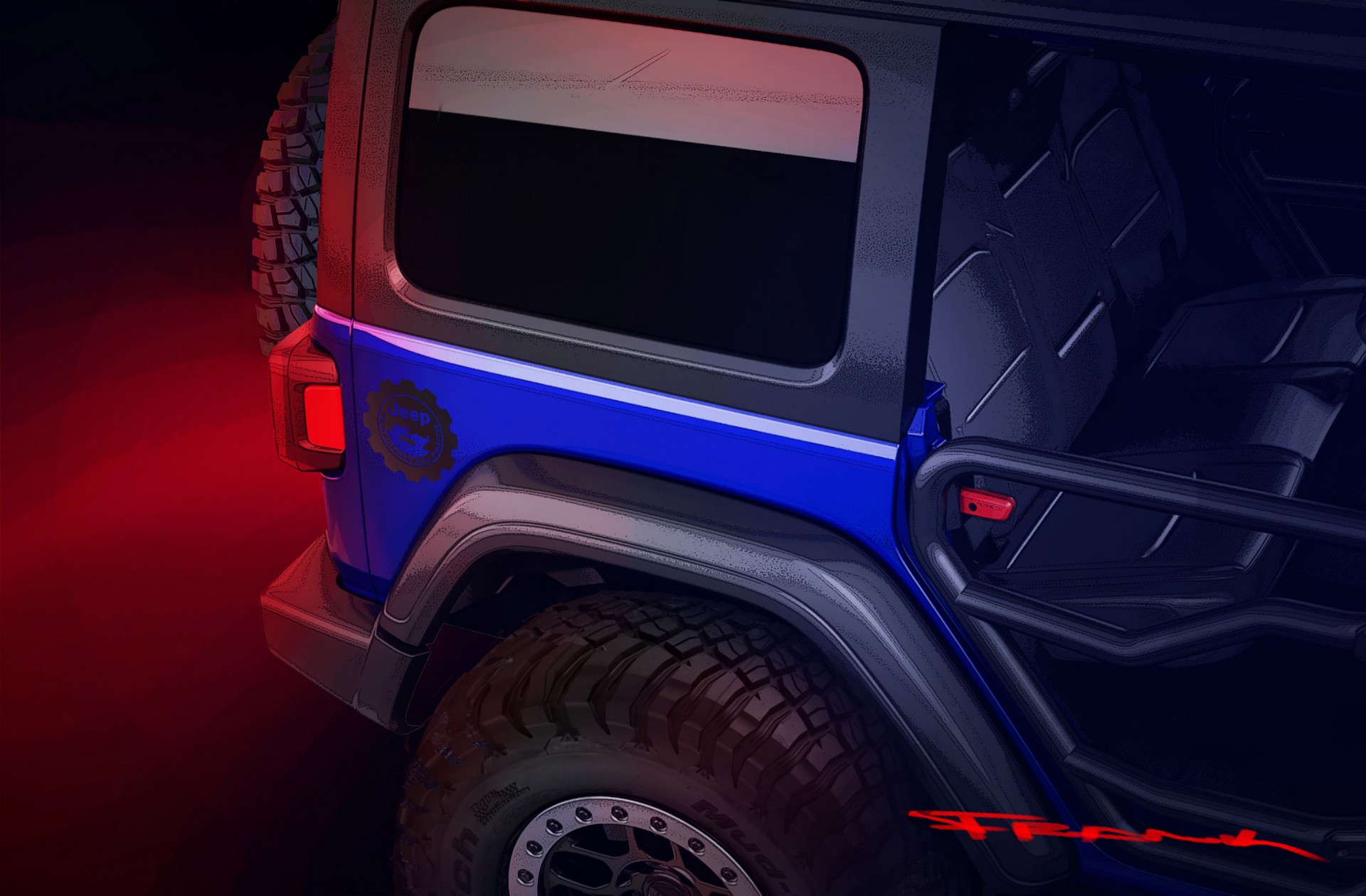 That’s not much to go on, but the teaser image reveals the special edition will be a Wrangler that has been equipped with tubular doors and beadlock-style wheels. We can also see off-road tires, a black hardtop and a Jeep Performance Parts decal on the rear fender.