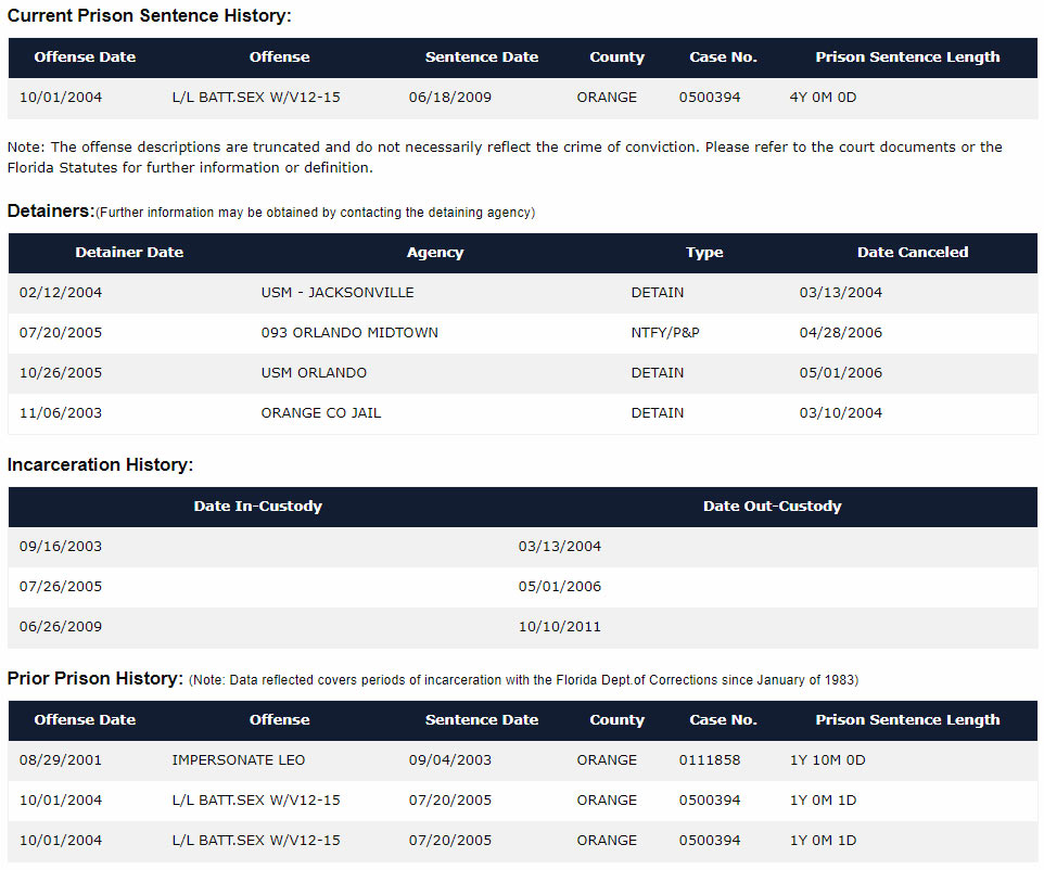 The Florida Department of Corrections shows Dewitte has spent plenty of time behind bars as he was incarcerated in 2001 for impersonating a law enforcement officer. He also was also jailed between 2005-2006 and 2009-2011.