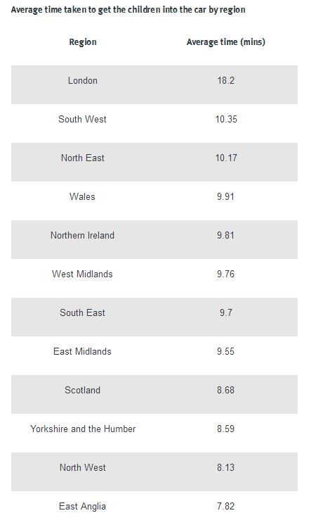 The research also shows that Scottish children are apparently better behaved when it comes to leaving the house (unlike children from London). Meanwhile, a third of Northern Irish parents find that their biggest challenge is getting kids strapped into their car seats.