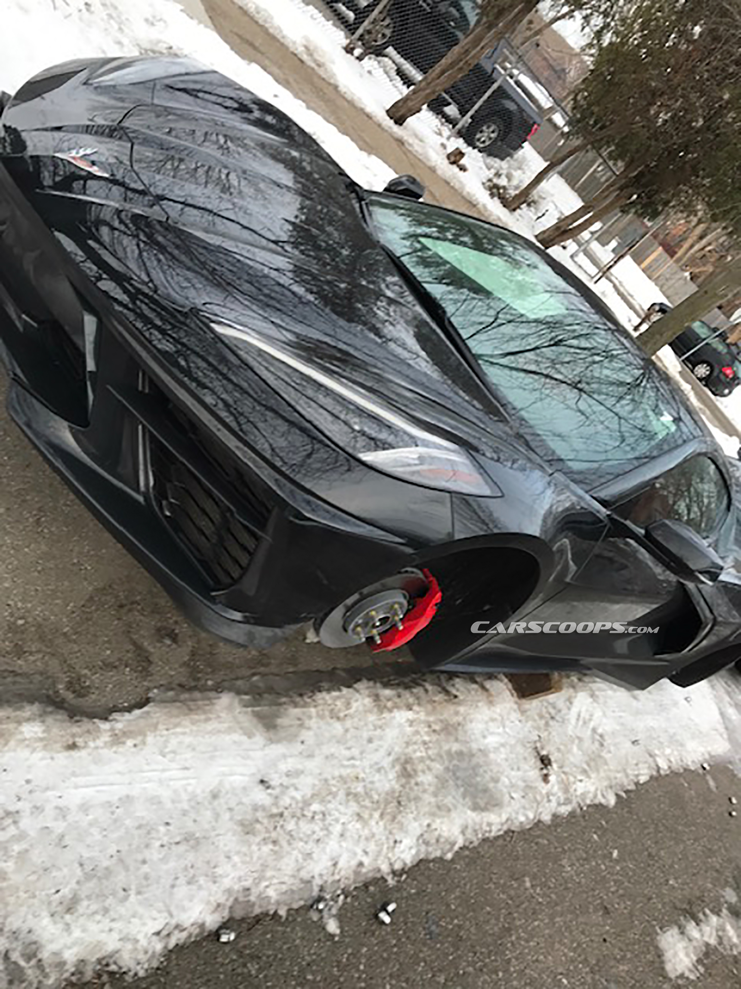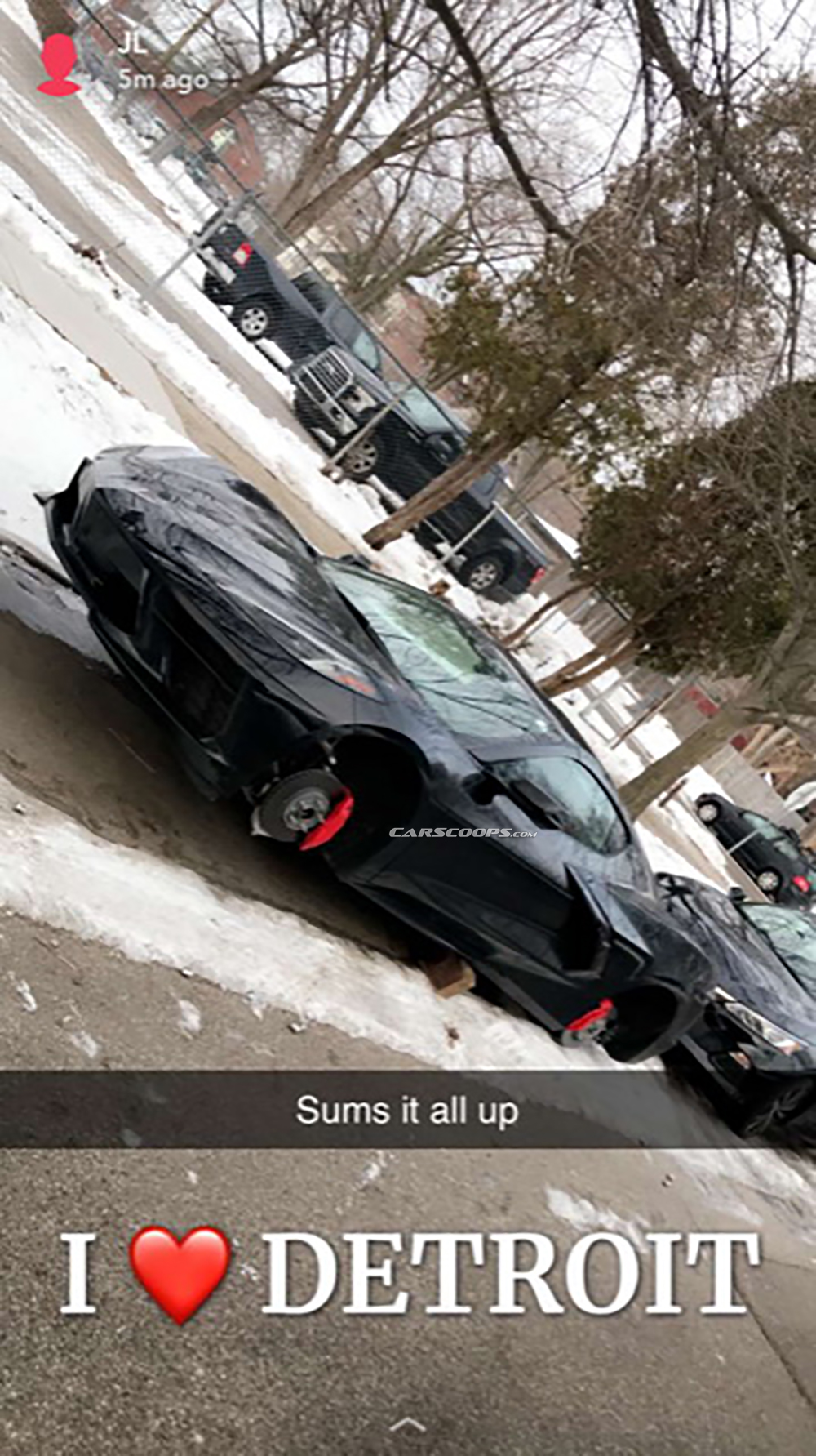 As spotted by a CarScoops reader, this Corvette C8 become a victim of Detroit’s seedy underground as its wheels were stolen overnight.