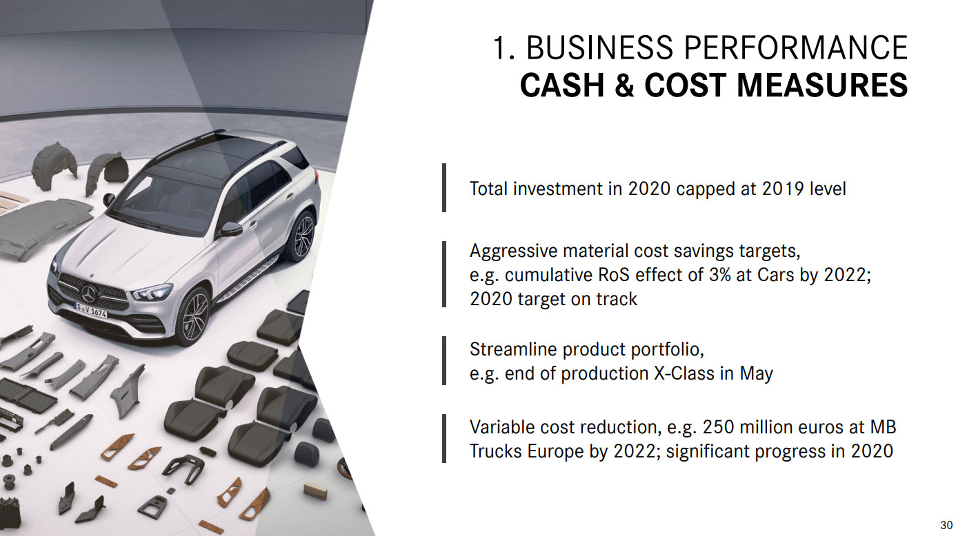 Daimler Chairman Ola Källenius told investors that “We cannot be satisfied with our bottom line.” He added, “measures to cut costs and to increase cash flows are necessary.”