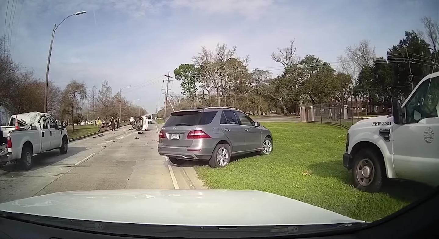 Take, for instance, the driver of the white Chrysler 300 in this dashcam video shot in New Orleans, Lousiana, on January 22. We see the car entering a two-lane road and then accelerating on the straight stretch of pavement, without noticing that a pickup with a trailer attached to it was stationed on their lane about 200 yards ahead.