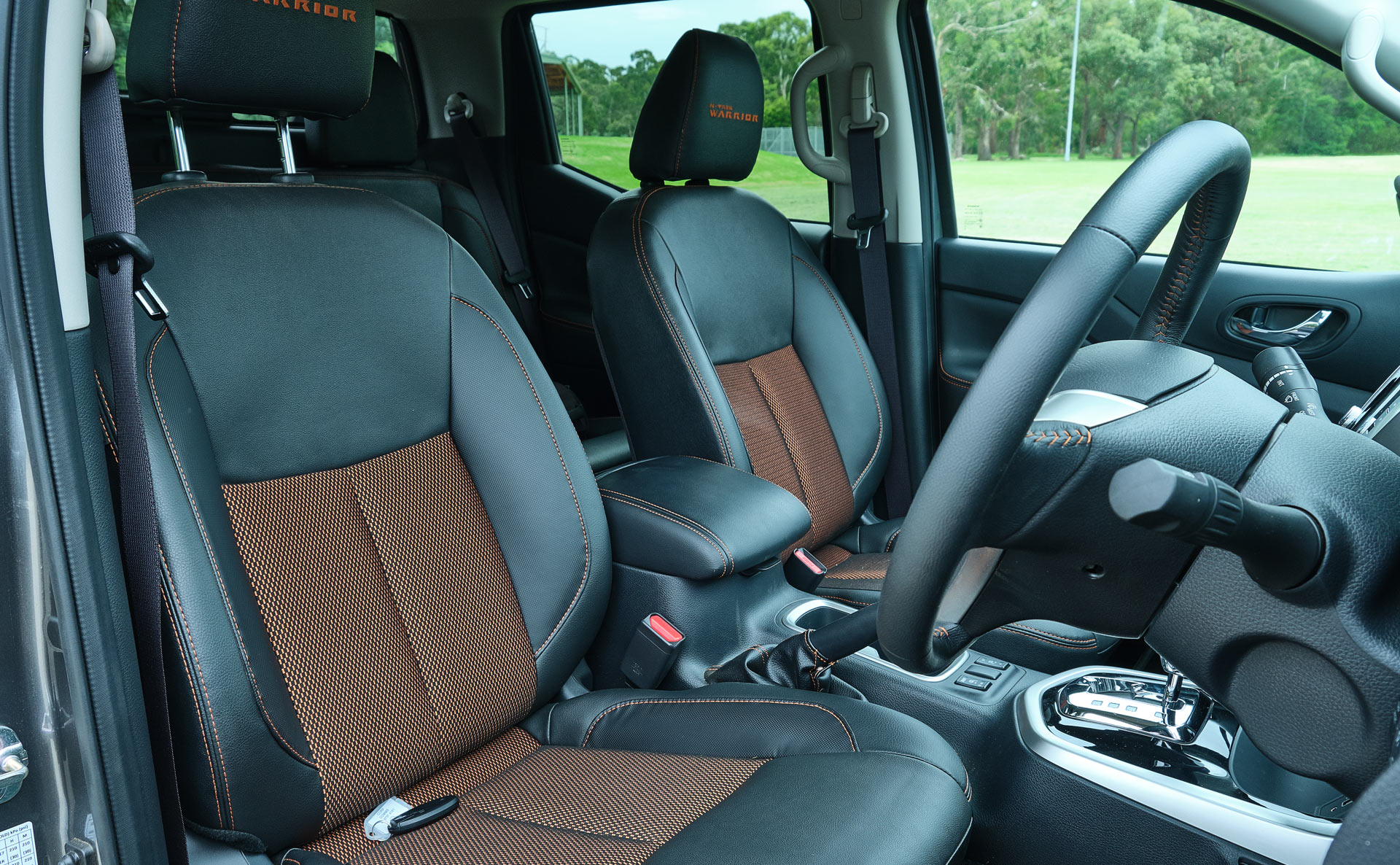 The cabin of the Warrior is virtually identical to the lesser N-Trek model and comes complete with leather seats featuring heated functions and a host of orange accents. The most notable change between the N-Trek and the Warrior is the presence of stitching denoting the specific model on the headrest.