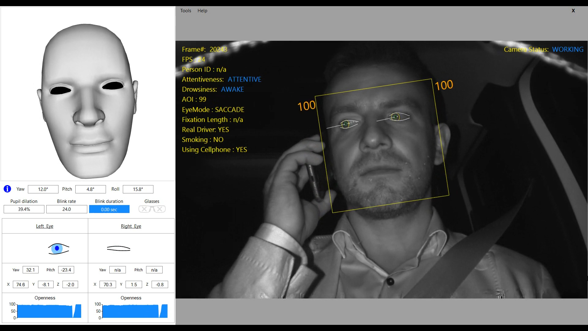 Using Artificial Intelligence (AI), the technology includes an algorithm that analyzes the position of the head, angle of vision, eye openness and blink rate, as well as other parameters, to determine whether the driver is fully awake and aware of the surrounding environment. Should it detect drowsiness, sleepiness or distraction, the system will trigger an alert.