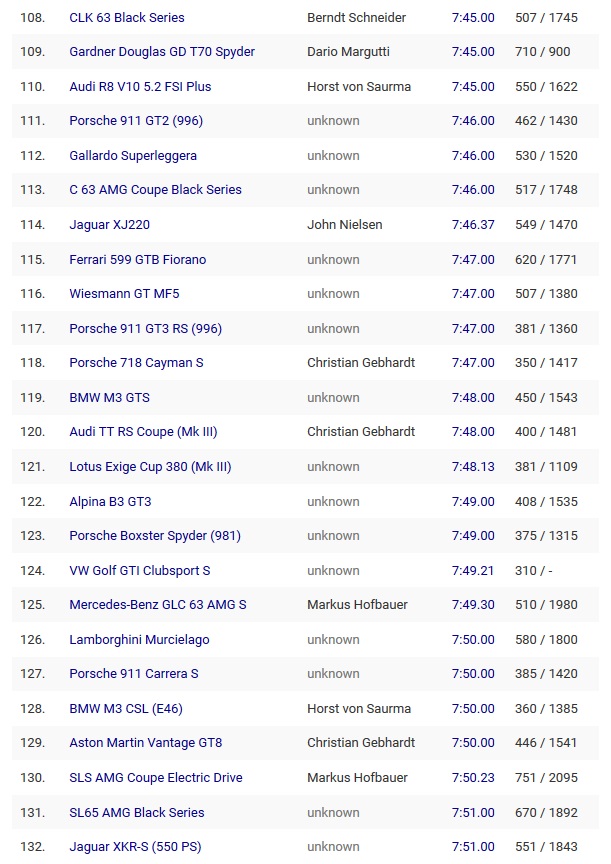 The impressive time puts it ahead of the Porsche 911 Carrera S, BMW M3 CSL E46 and Aston Martin Vantage GT8, all of which posted an identical time of 7:50. Further down, we find the Mercedes-Benz SLS AMG Electric Drive, SL 65 AMG Black Series, Jaguar XKR-S and Alfa Romeo Stelvio QV, as well as the first-gen Ford GT, Lamborghini Gallardo LP560-4 and V10-powered BMW M5 E60. The A45 S came 8 tenths of a second behind the BMW M3 GTS and Audi TT RS Coupe, and almost two seconds behind the Porsche 718 Cayman S, 911 GT3 RS (996) and Ferrari 599 GTB.