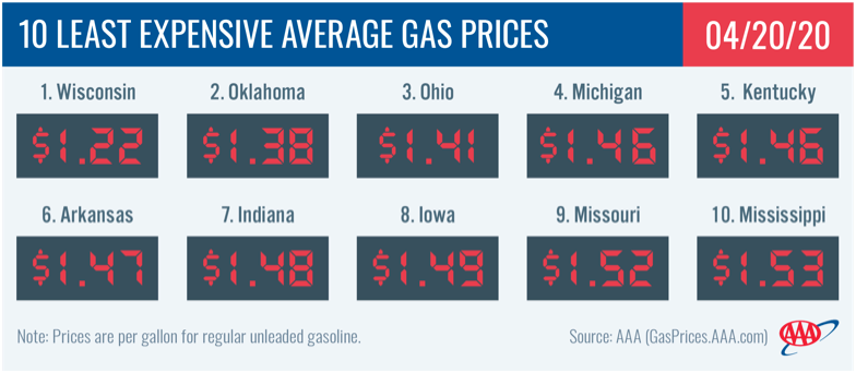 While you shouldn’t expect to get paid for filling up, AAA reports 25% of gas stations in the United States are selling a gallon of gas for $1.49 (£1.20 / €1.37) or less. Wisconsin has the cheapest gas with an average price of $1.22 (£0.98 / £1.12) a gallon and the state is followed by Oklahoma ($1.38 / £1.11 / €1.27) and Ohio ($1.41 / £1.13 / €1.30). Of course, those are just average prices and a number of stations are selling gas for less than $1 (£0.80 / €0.92).