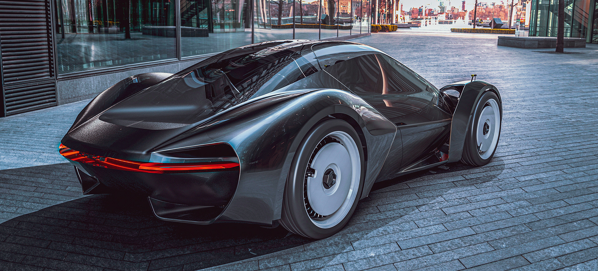 While the artist makes no mention of what type of powertrain the car could use, electric motors would likely work best for the small proportions of the car and its short front and rear overhangs.