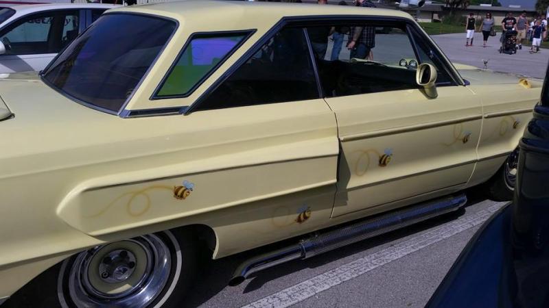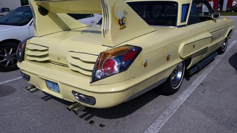 The odd modifications continue on the hood with some rounded fins and what looks to be a badge with a flying bee. The car’s owner clearly has quite a thing for bees as they can be seen across much of the exterior. Then there’s the paint itself which is a light shade of yellow that wouldn’t look good on any car.