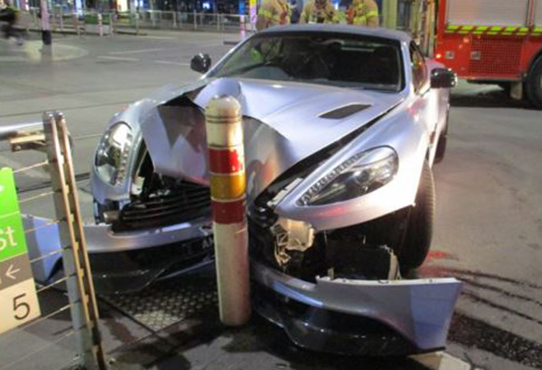 Victoria Police report that the woman was driving the silver V12-powered Vanquish at approximately 12:25 a.m. AEST on Thursday morning when she lost control turning left and crashed into a bollard at a tram stop in the center of the road.