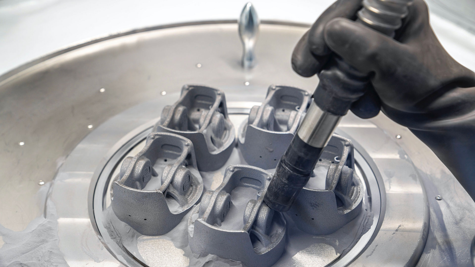 In partnership with Mahle and Trumpf, Porsche uses high-purity metal powder and the laser metal fusion process to create the parts. This process involves a laser beam heating and melting the powder surface corresponding to the part contour. The result is that almost any geometric shape can be 3D printed after design data is sent from a computer.