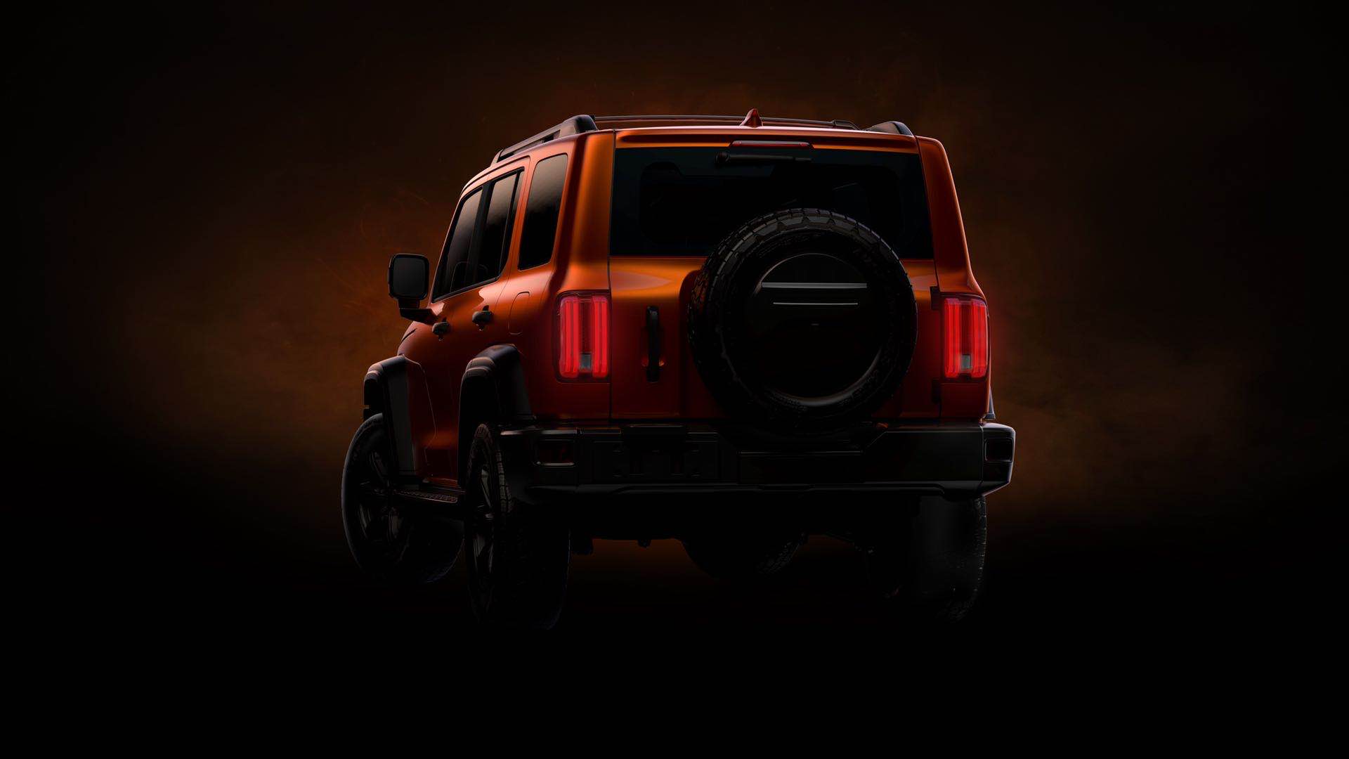 Dubbed the P01 and coming from WEY, teasers reveal the SUV will have very similar round headlights to the Bronco as well as horizontal LED daytime running lights. We can also see a prominent front grille with three horizontal slats and a rugged-looking bumper with small fog lights.