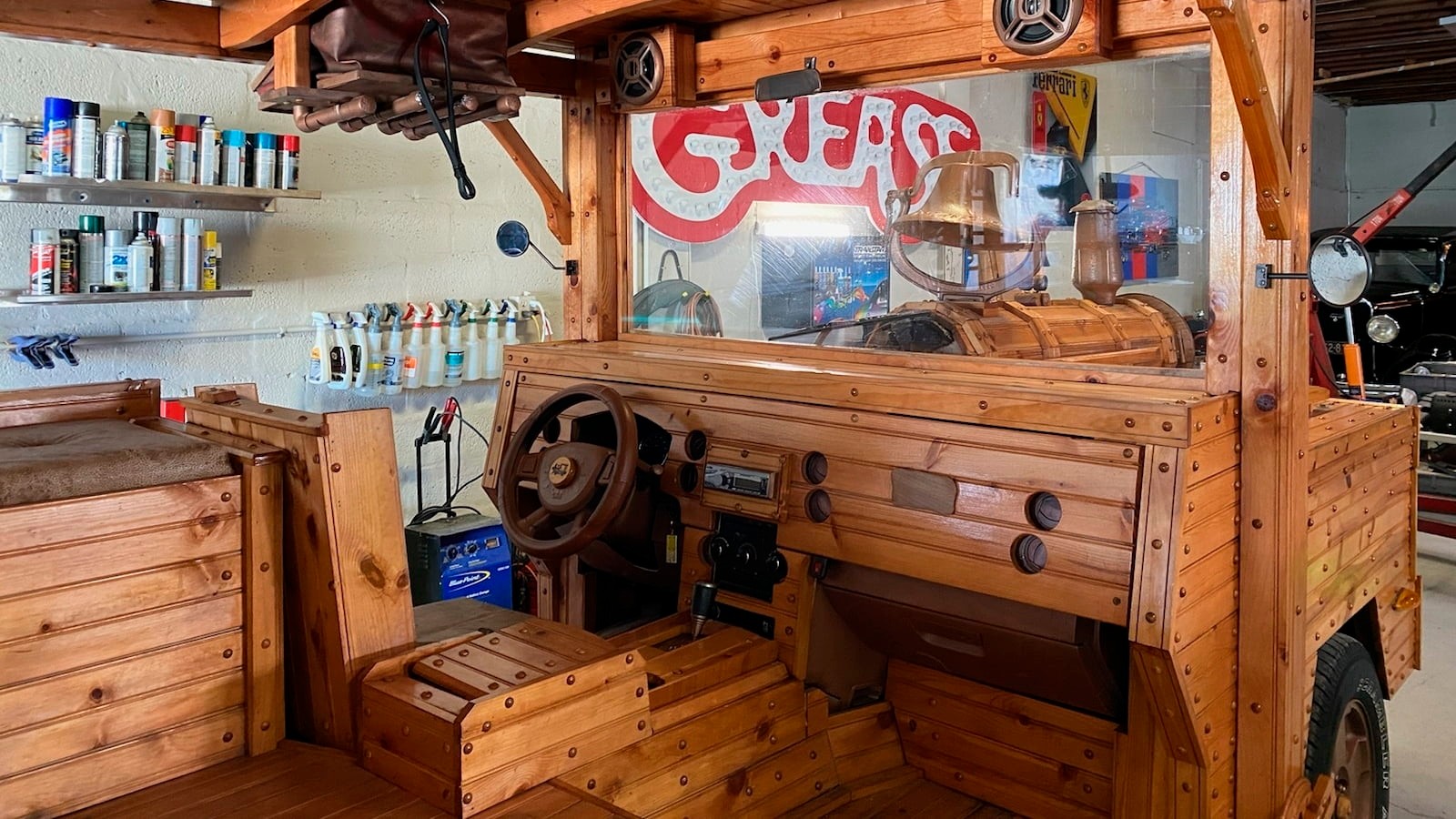The listing doesn’t say anything about the vehicle, but the pictures are worth a thousand words. As you can see, the model has been gutted and equipped with custom wooden bodywork.
