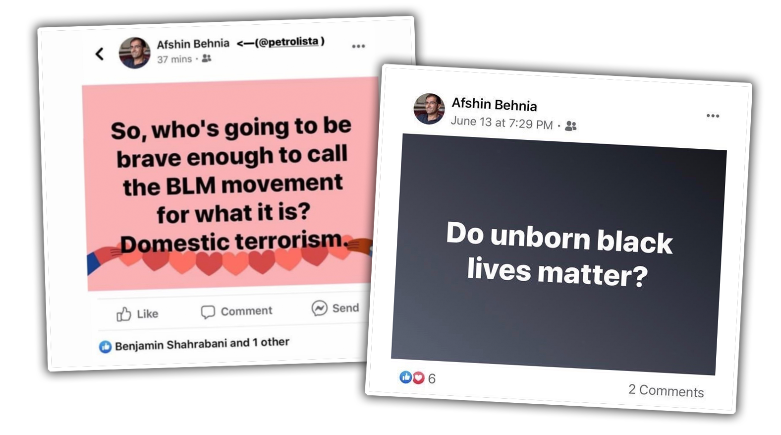 Behnia went on to say “I believe our fight for justice is derailed when we loot, burn and destroy innocent lives.” He added, “My post was written out of frustration at seeing our pursuit of justice turn into senseless violence led by the actions of a few within their ranks, which I believe is causing to divide us.”