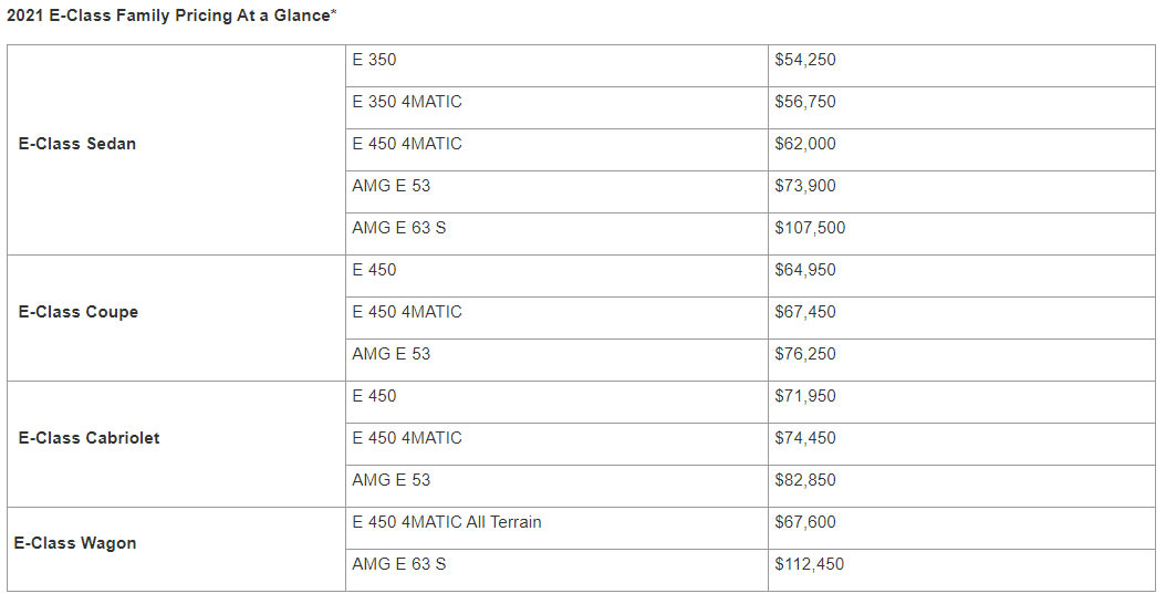 The rear-wheel drive coupe begins at $64,950 while the all-wheel drive variant costs an additional $2,500. Likewise, the E 53 retails for $76,250.