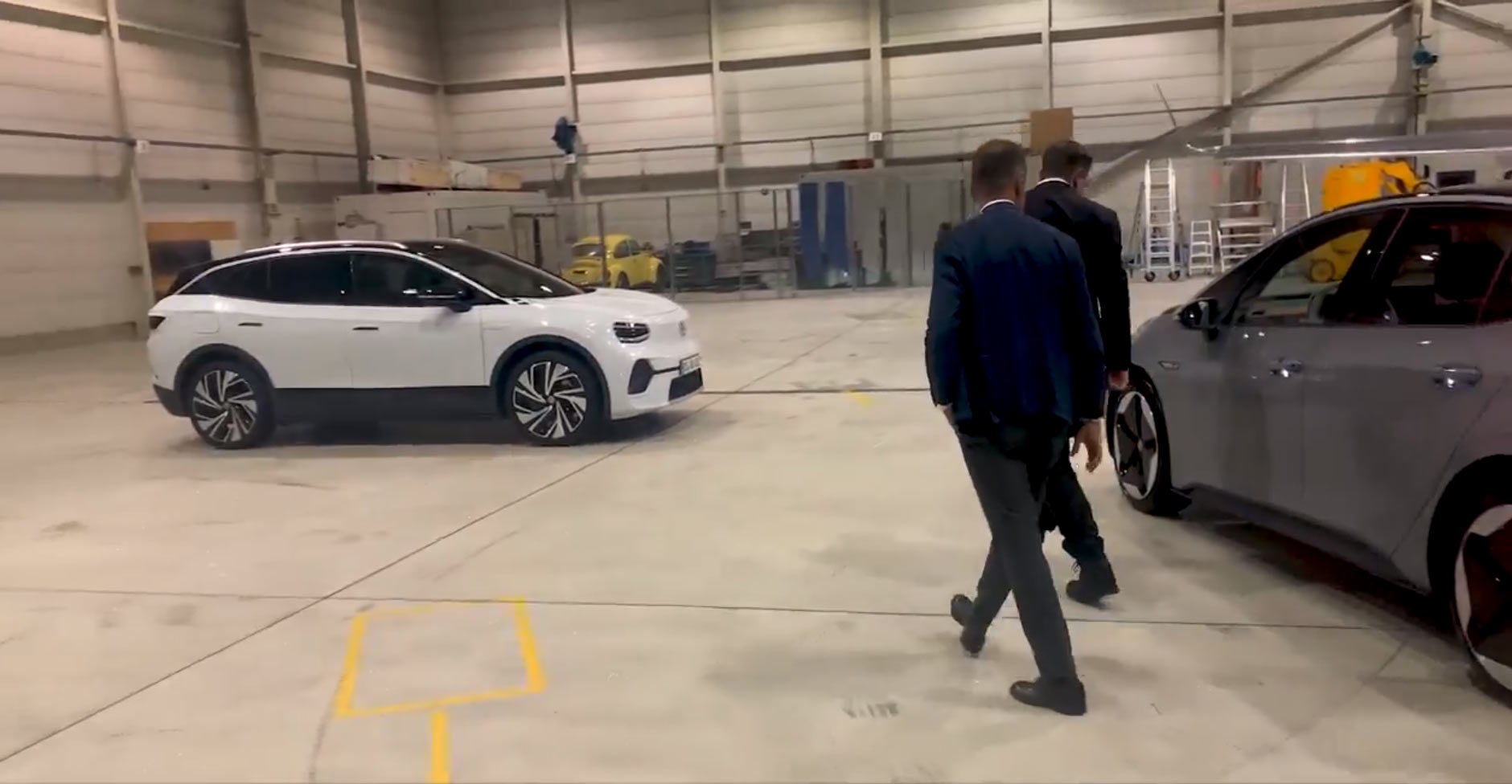 After the two return to the airport hangar, we can see a thinly disguised ID.4 crossover. The two execs don’t discuss it on camera, but the ID.4 will be unveiled later this month.
