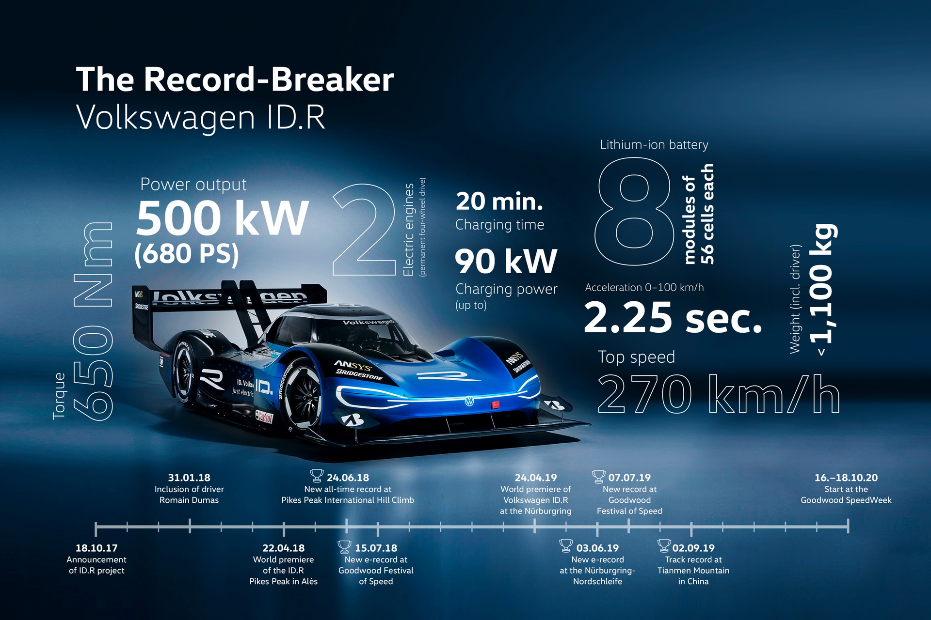 The ID.R currently holds a total of four records across three continents, as well as the lap record for electric cars on the Nurburgring in Germany.