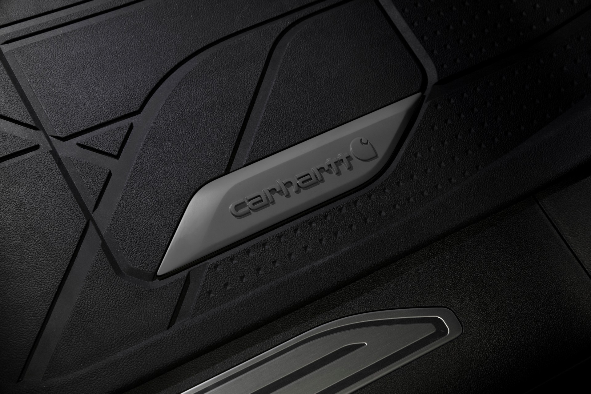 Moving into the cabin, buyers will find exclusive Jet Black and Carhartt Brown leather seats with unique stitching and embroidered headrests. Last but not least, there are Carhartt-branded all-weather floor mats.
