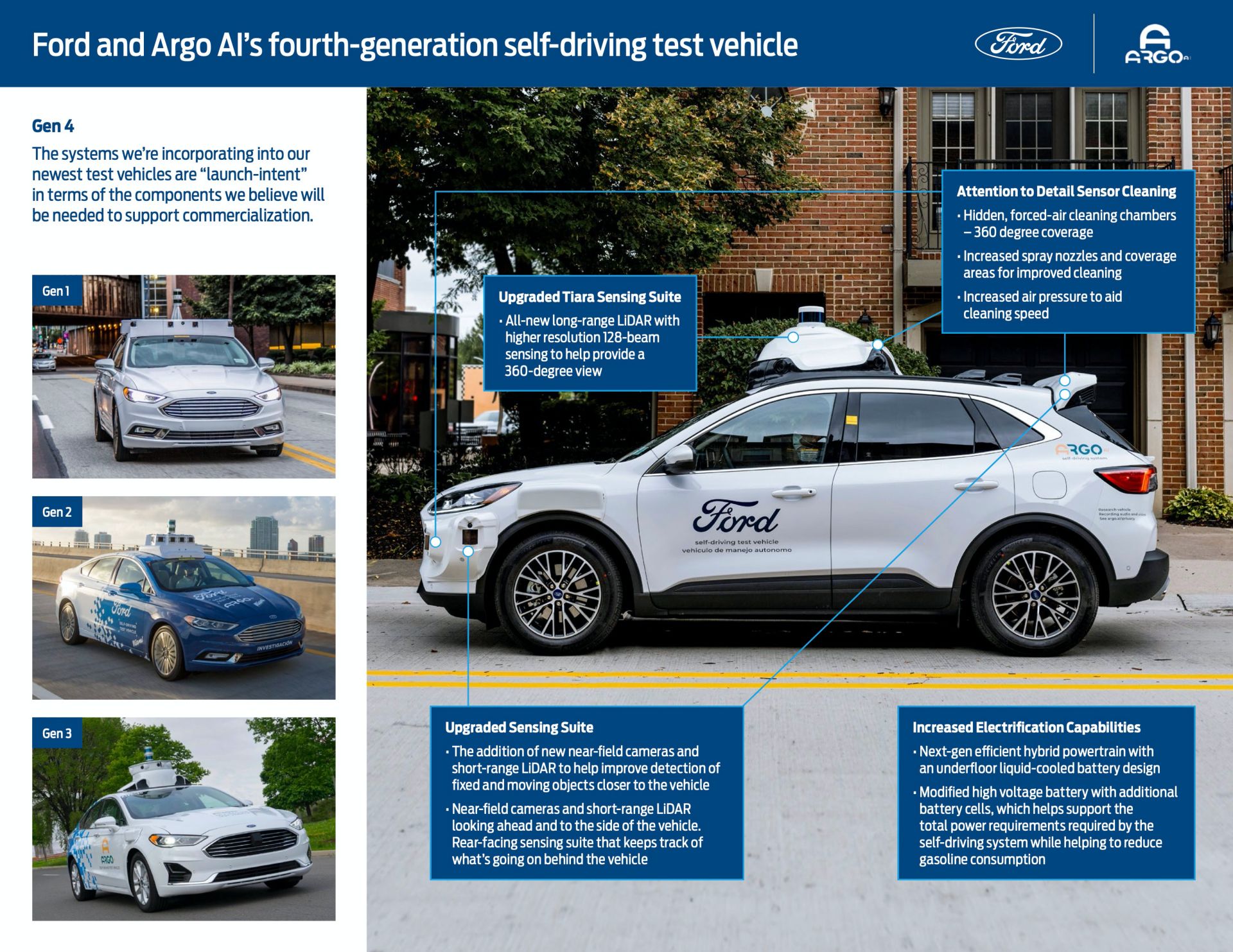 Ford says it will gradually integrate its fourth-generation vehicles into its multi-city testing efforts alongside the fleet of Fusion Hybrids in Austin, Detroit, Miami, Palo Alto, Pittsburgh and Washington, D.C.
