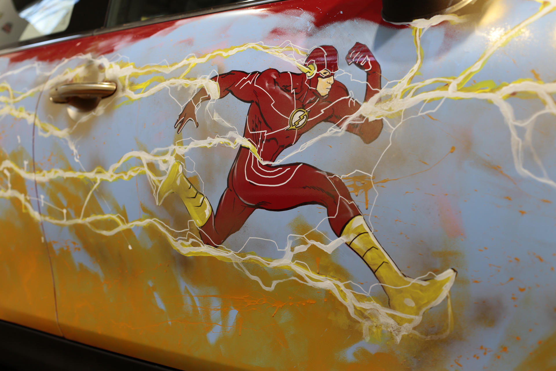 The first appearance of ‘The Flash’ came in 1940 with the first Flash Comics issue, and the carmaker decided to let famous cartoonist Carmine Di Giandomenico paint on a Mini Electric for the occasion.