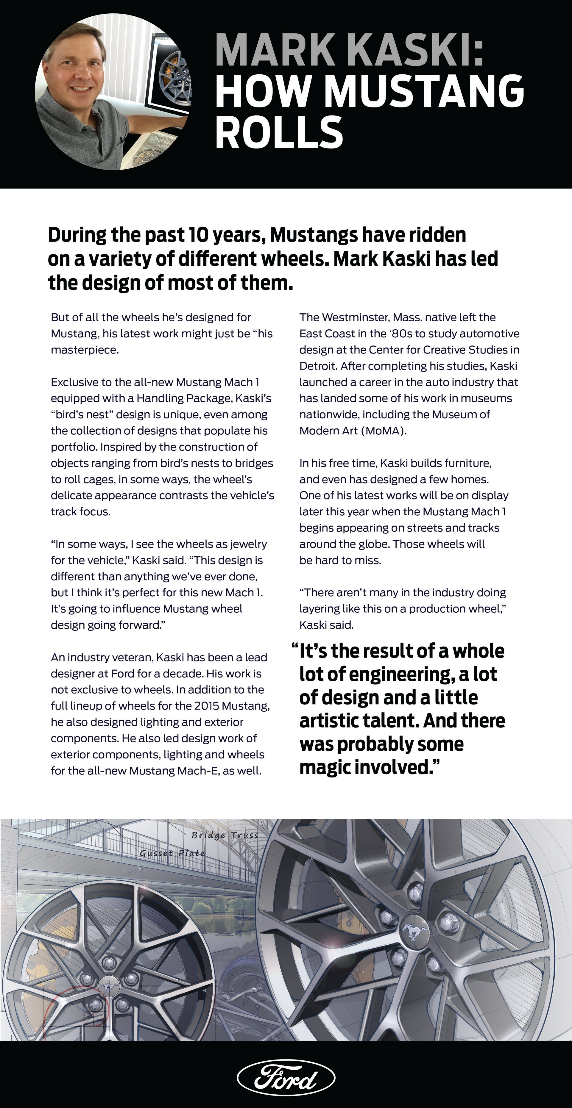 “This design is different than anything we’ve ever done, but I think it’s perfect for this new Mach 1,” said Kaski in a statement. “It’s going to influence Mustang wheel design going forward.”