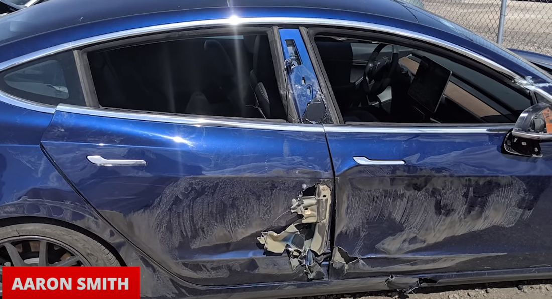 Images taken of the Tesla after the crash show that both the passenger side doors were scratched and dented heavily by the truck. The passenger-side front wheel was also ruined, as was the front bumper. Unsurprisingly, the narrator of this video says that the Tesla was determined to be a total loss.