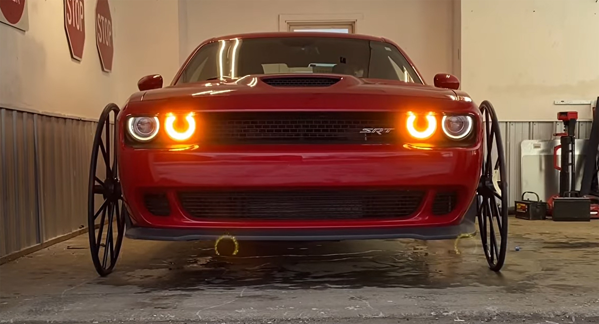 YouTuber WhistlinDiesel is certainly no stranger to doing insane things with their vehicles, and this is no different, as they managed to get the wheels from a horse and buggy and fit them onto a Dodge Challenger Hellcat.