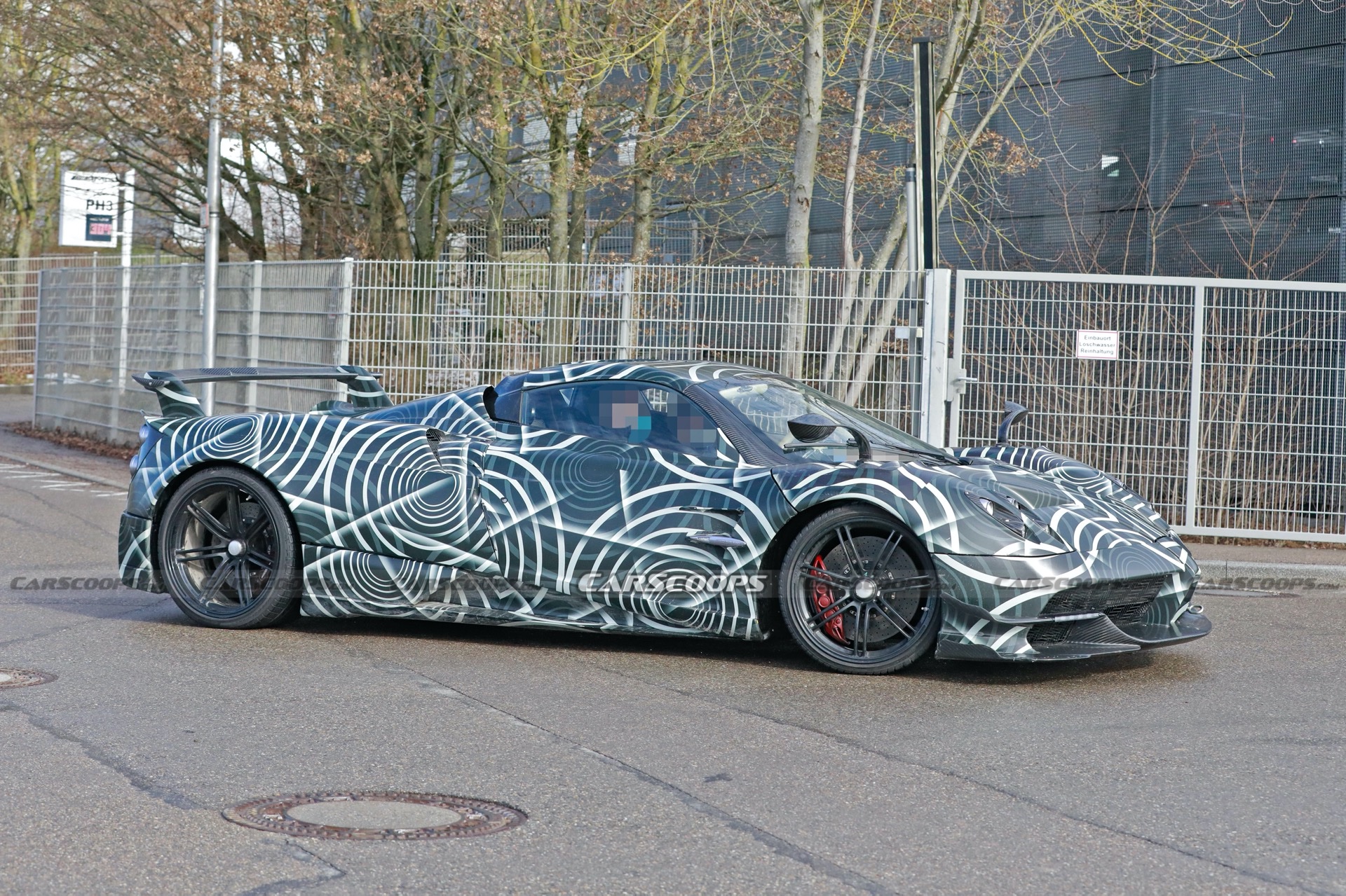 Providing some respite from the onslaught of upcoming EVs (not that we’re complaining, just that a bit of variety is nice) is this: what appears to be a variation on the Huayra BC Roadster under camouflage — or at least what we expect is a new limited-run version.