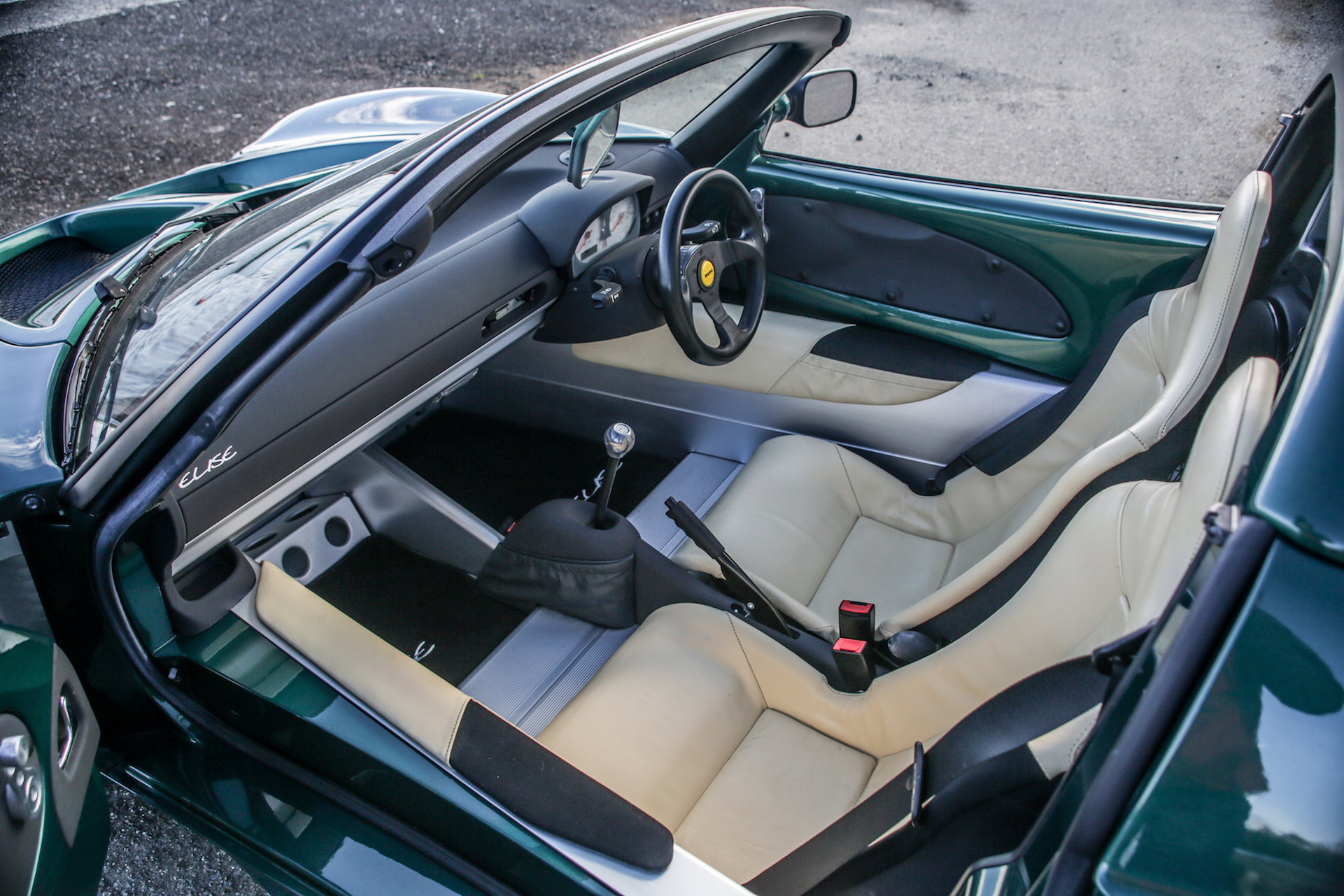 RM Sotheby’s listing doesn’t include too many details about this specific four-owner car, which comes finished in metallic British racing green paint that’s offset by the immaculate-looking magnolia leather bucket seats. It has the standard 1.8-litre Rover K-series engine, which sends just 118bhp through the five-speed transmission, but thanks to its low weight the S1 Elise could reach 60mph in less than 6 seconds.