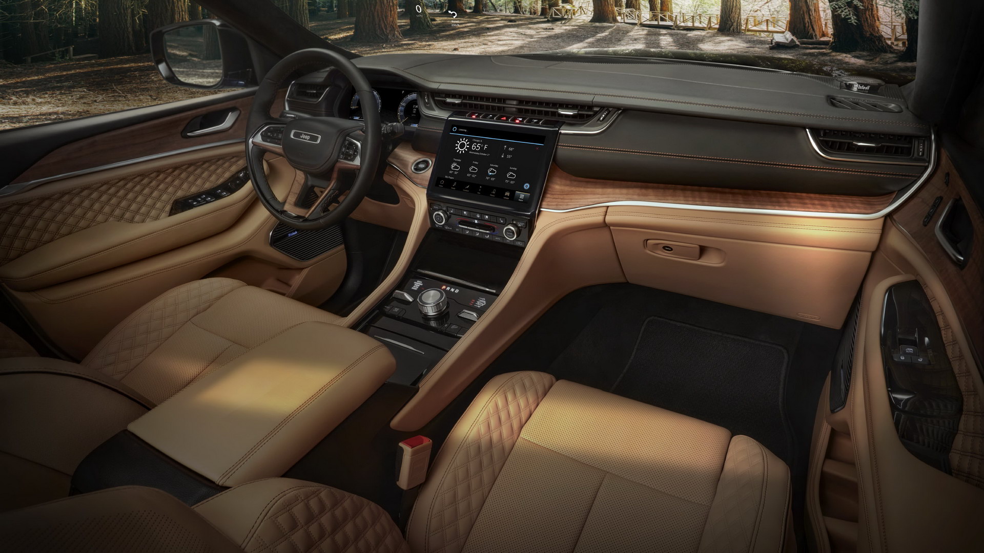 Although the Grand Cherokee took a step up in terms of interior design with the L, thanks to its 8.4-inch screen (or up to 10.1) and elegant new materials, it’s a step behind the Wagoneers.