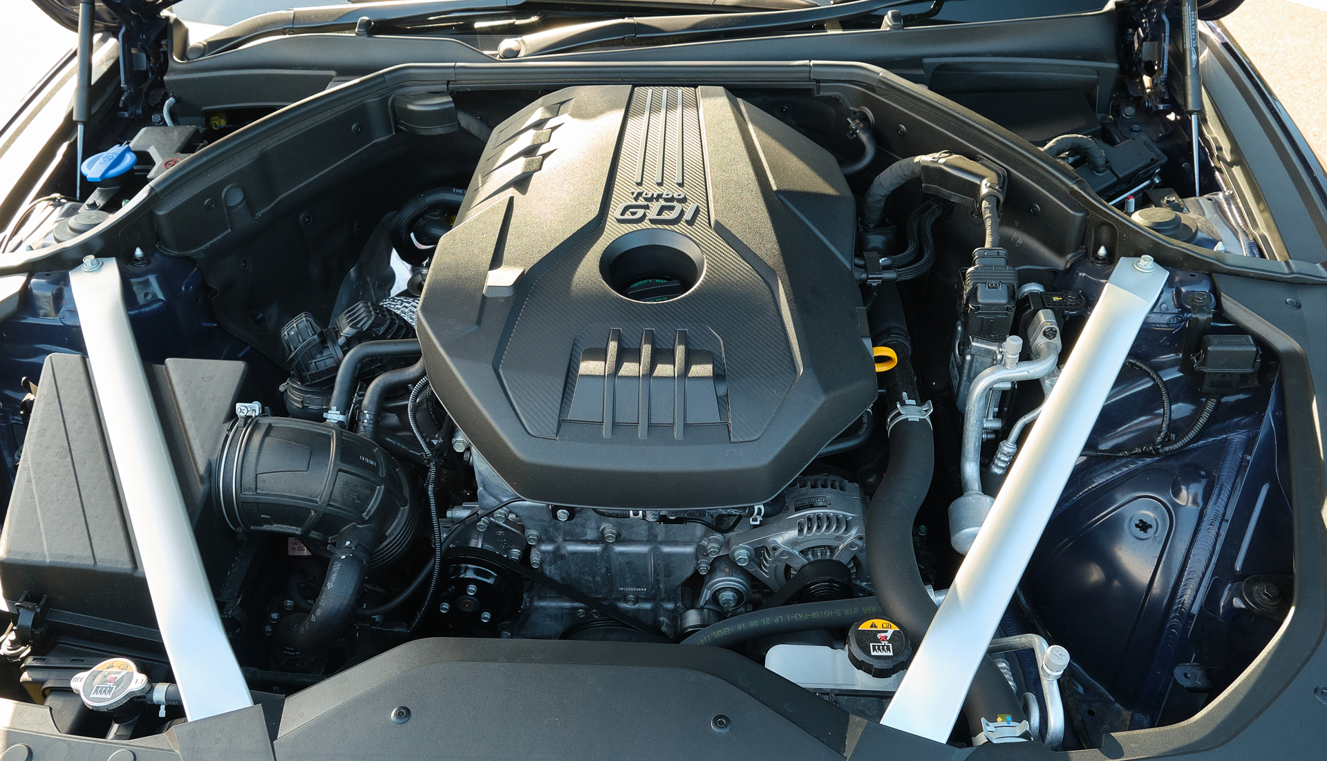 The 2.0-liter turbocharged Theta-II four-cylinder includes variable valve timing and delivers 240 hp (179 kW) at 6,200 rpm and (260 lb-ft) 353 Nm of torque between 1,400 rpm and 4,000 rpm. By comparison, the 3.3-liter twin-turbo is good for 365 hp (272 kW) and 376 lb-ft (510 Nm). The 2.0T sports an eight-speed automatic transmission that drives the rear wheels through a limited-slip differential. During our week-long review, we averaged 10.7 l/100 km (21.9 U.S. mpg), much better than the 16.0 l/100 km (14.7 U.S. mpg) we averaged with the 3.3T.