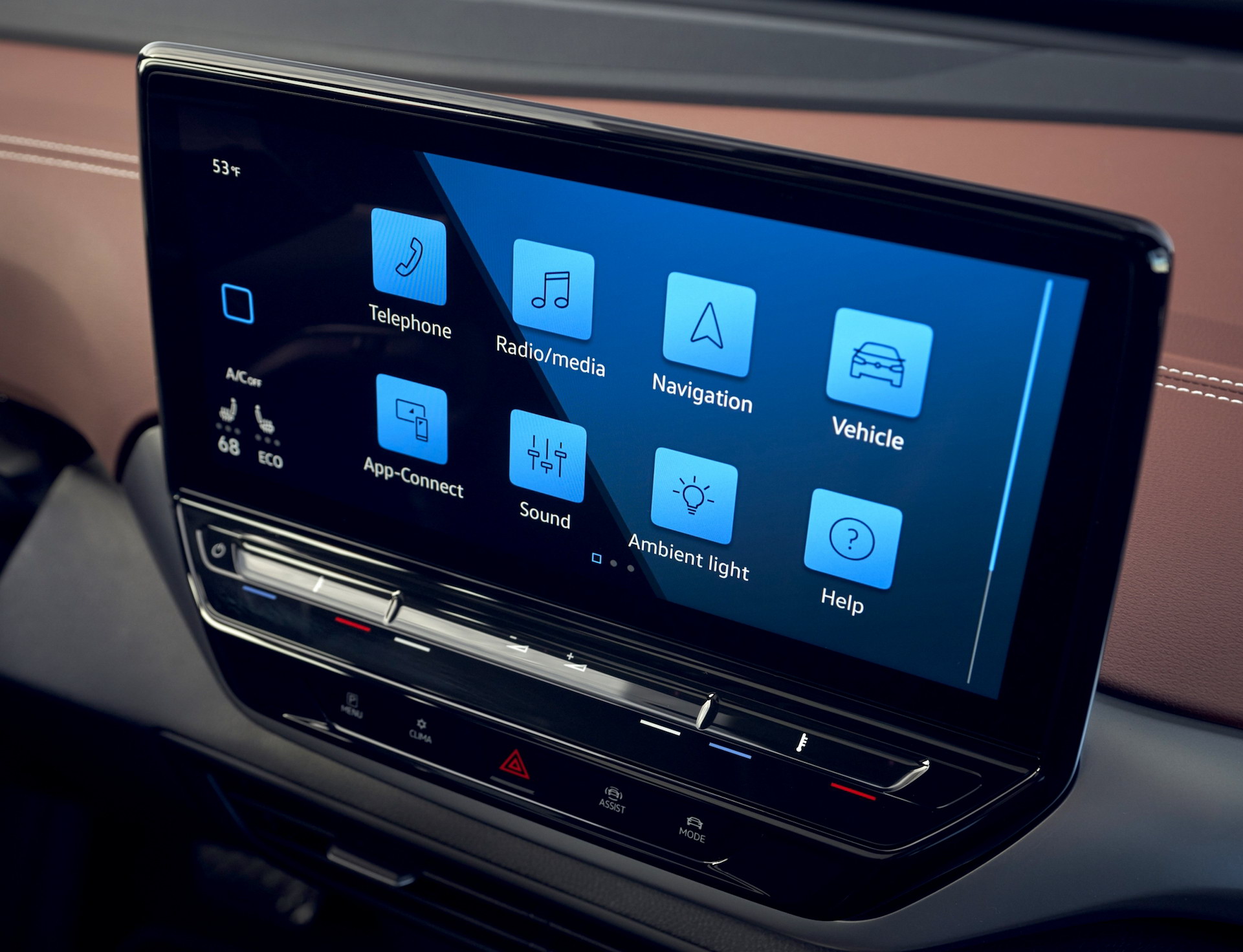 The ID.4’s standard 10-inch infotainment screen on the entry-level ID.4 Pro is disappointingly small next to a Tesla Model 3’s or Mach-E’s displays, and the software isn’t as slick. The more expensive Pro S (Statement) trim gets a bigger 12-inch display. Both come with wireless charging and smartphone app connectivity.