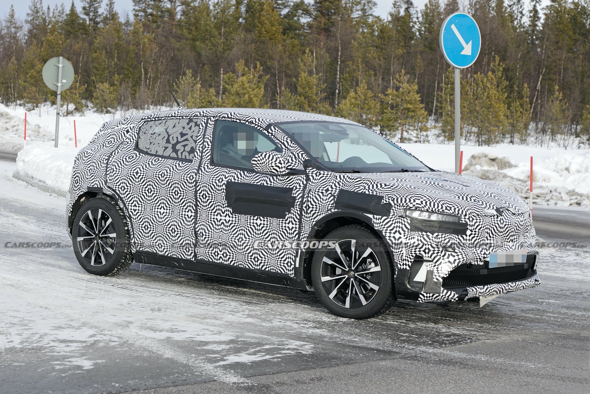 When the original concept was announced, it was said that the production car would look 95 percent like the concept, incorporating the same design elements such as the pushed-to-the-corners wheels and the distinctive 3D lighting. Those claims appear valid in these spy shots, which point to the body shape and lighting being similar to the Megane eVision.