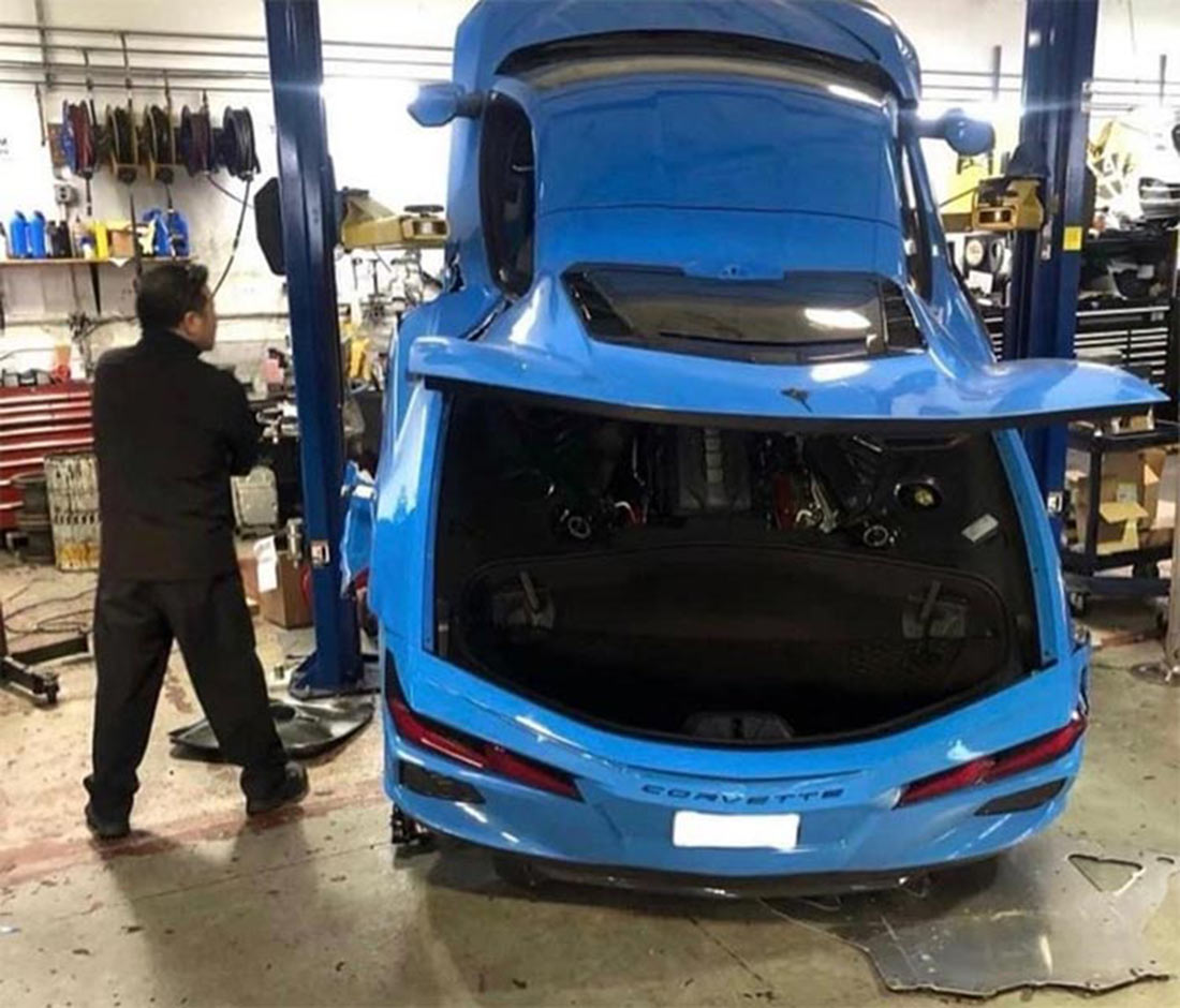 As the C8-generation Corvette is mid-engined, its weight distribution is very different than the C7. In fact, whereas the C7 had a 50-50 weight distribution, the C8 model has a 40-60 split. This means the new car needs to be lifted differently than its predecessor. Evidently, the mechanic at this shop might have not received the memo.