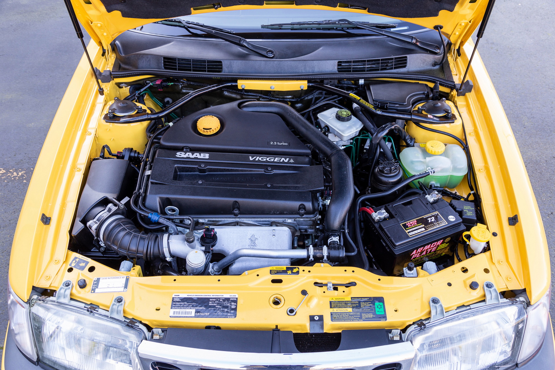The 9-3 Viggen is powered by a turbocharged 2.3-liter inline-four that delivers 230 hp (233 PS / 171 kW) and 252 lb-ft (342 Nm) of torque, which are sent to the front wheels via a five-speed manual transmission. As with the rest of the car, the engine bay is in impeccable condition, with no cracking, discoloration, or rust in sight.