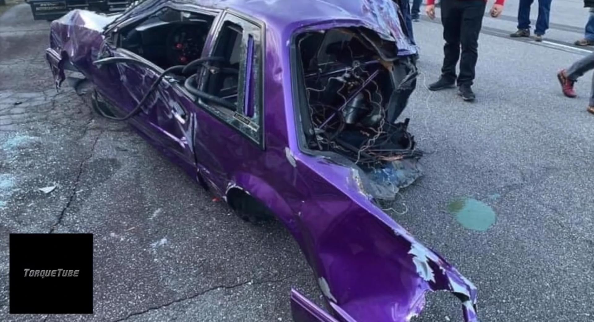 Mustang Gets Sliced In Half At A Drag Strip, Driver Manages To Walk Away Unharmed