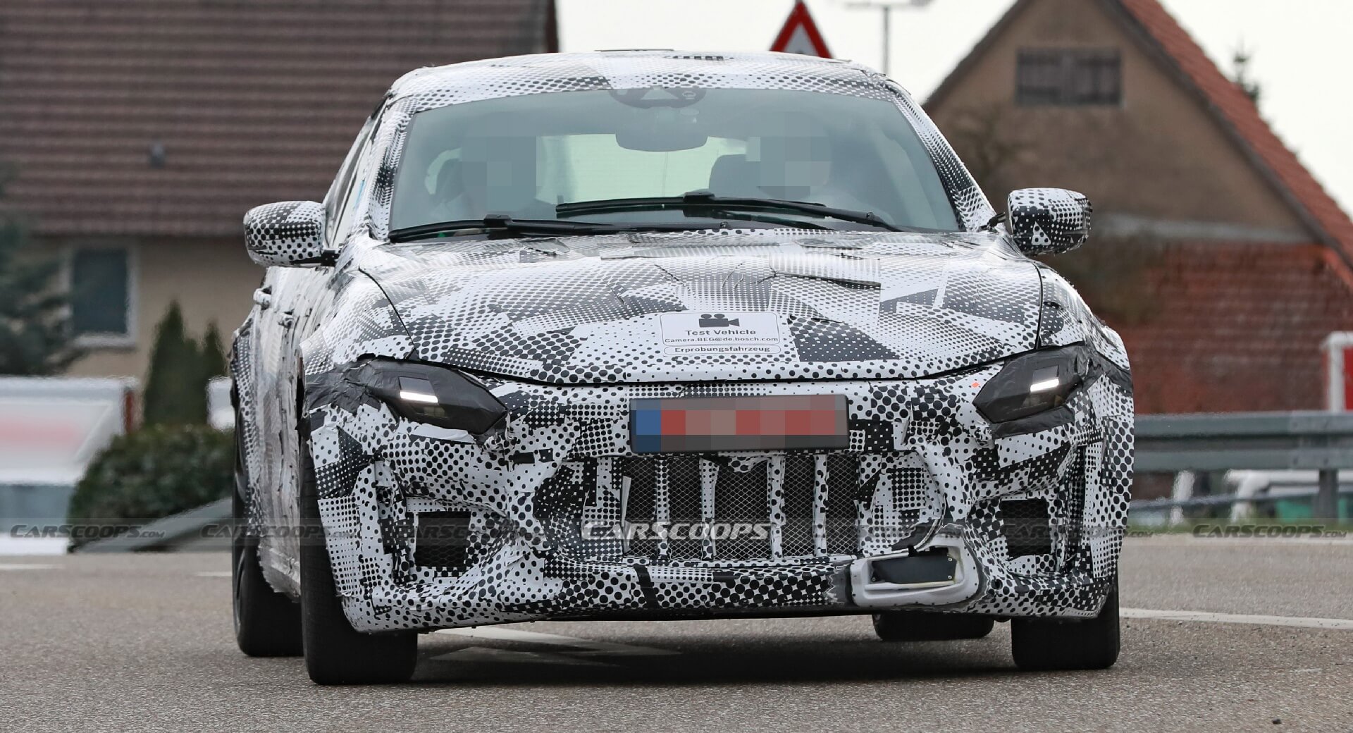 That’s because it uses new lighting units up front that appear to have been lifted from the Ferrari Roma. They have a very similar shape to the ones used on the front-engined GT and a horizontal LED strip right in the middle. It is still too early to confirm whether they have anything in common with the final production parts, but it’s nonetheless interesting to see it like this.