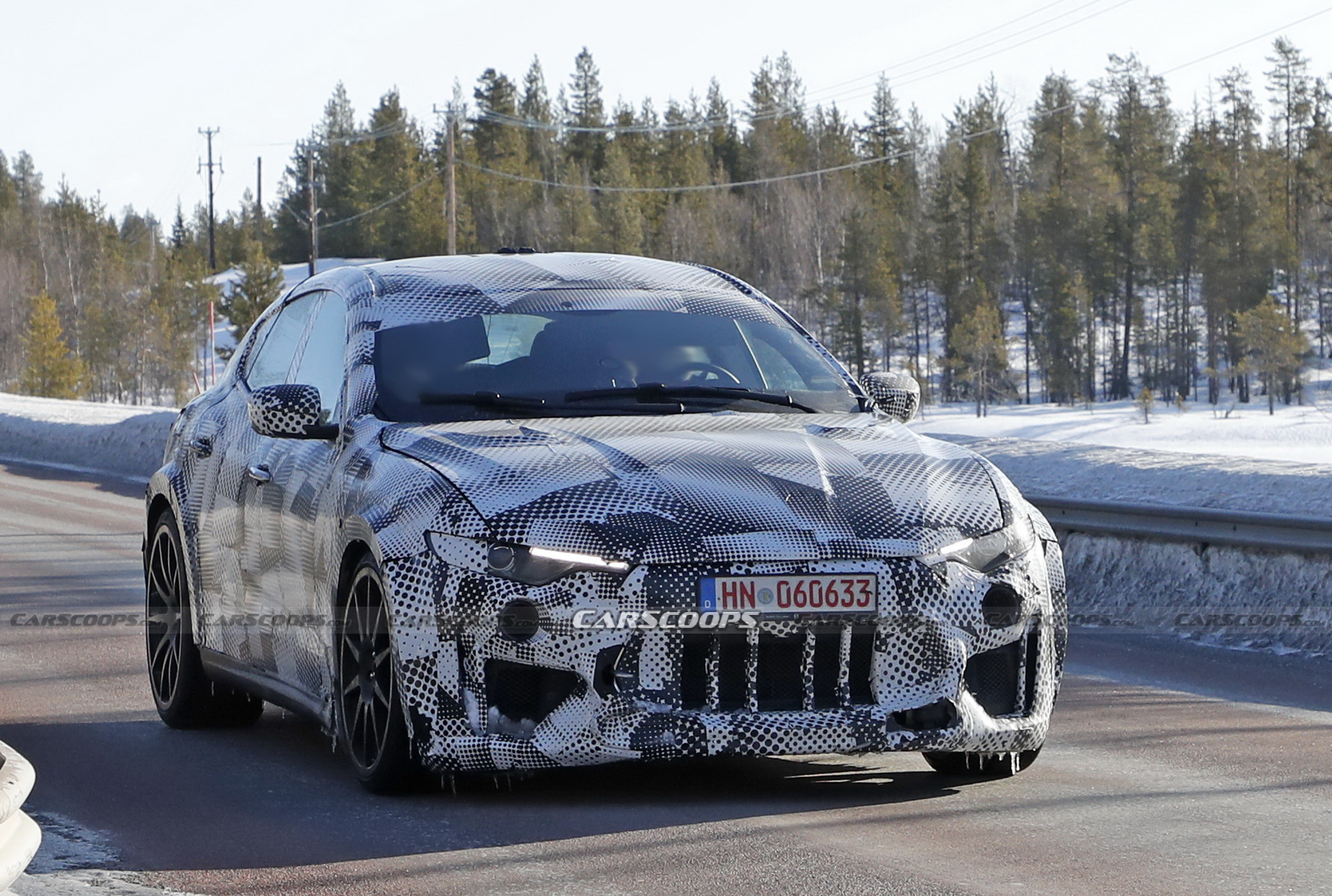 Our spies had yet another encounter with Ferrari’s Levante-based mule undergoing winter testing up in the mountains. Interestingly, the second prototype was not wearing the modified front end of the earlier mule with what looks like the Ferrari Roma’s headlamps, but the snout of the Levante. If anything, the Italians have us on our toes with what the Purosangue will look like. [Updated 4/3/2021]