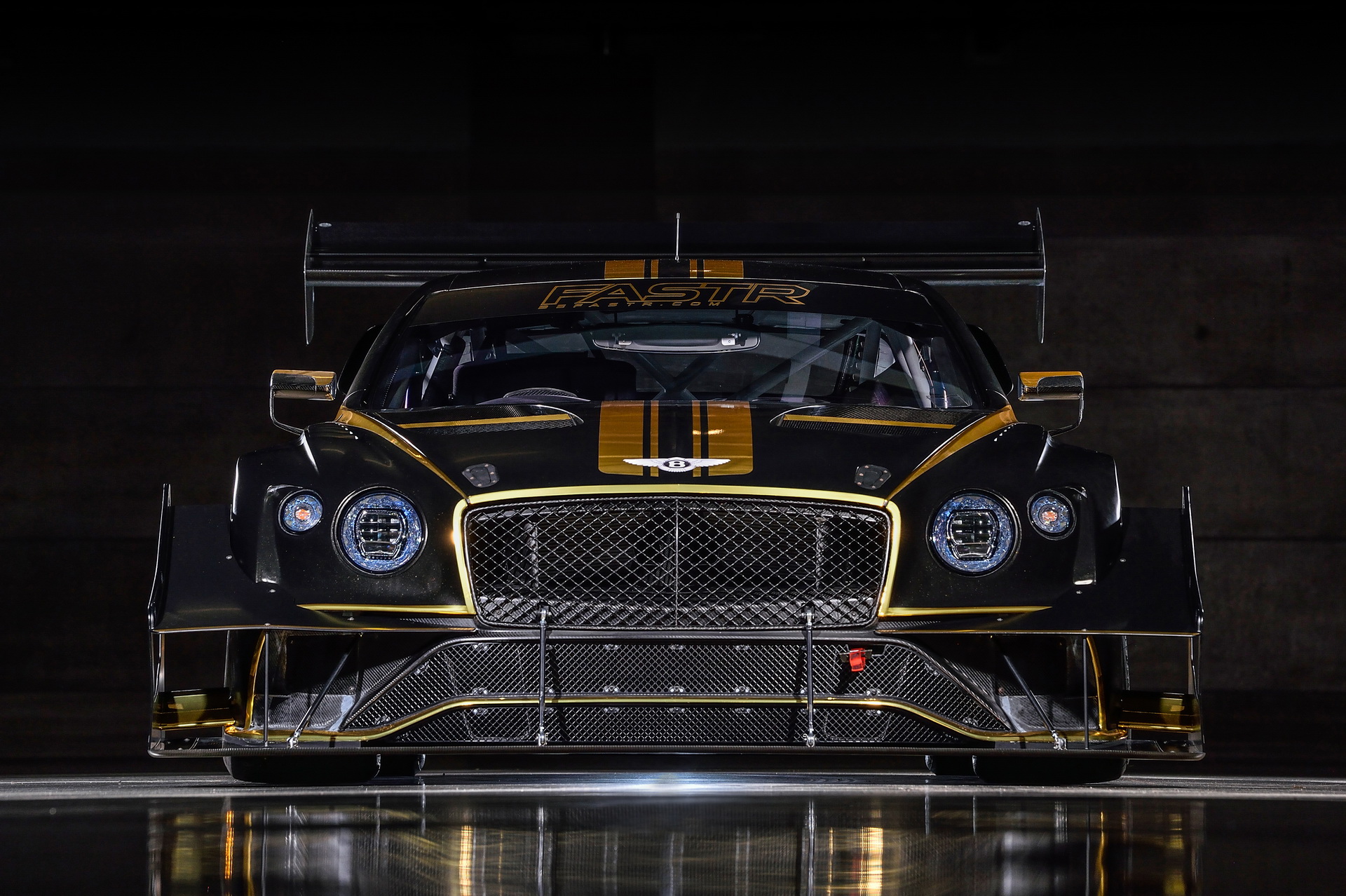 Aerodynamic modifications include the biggest rear wing ever fitted to a Bentley, a new rear diffuser that surrounds the transaxle gearbox, and a huge two-plane front splitter flanked by separate dive planes.