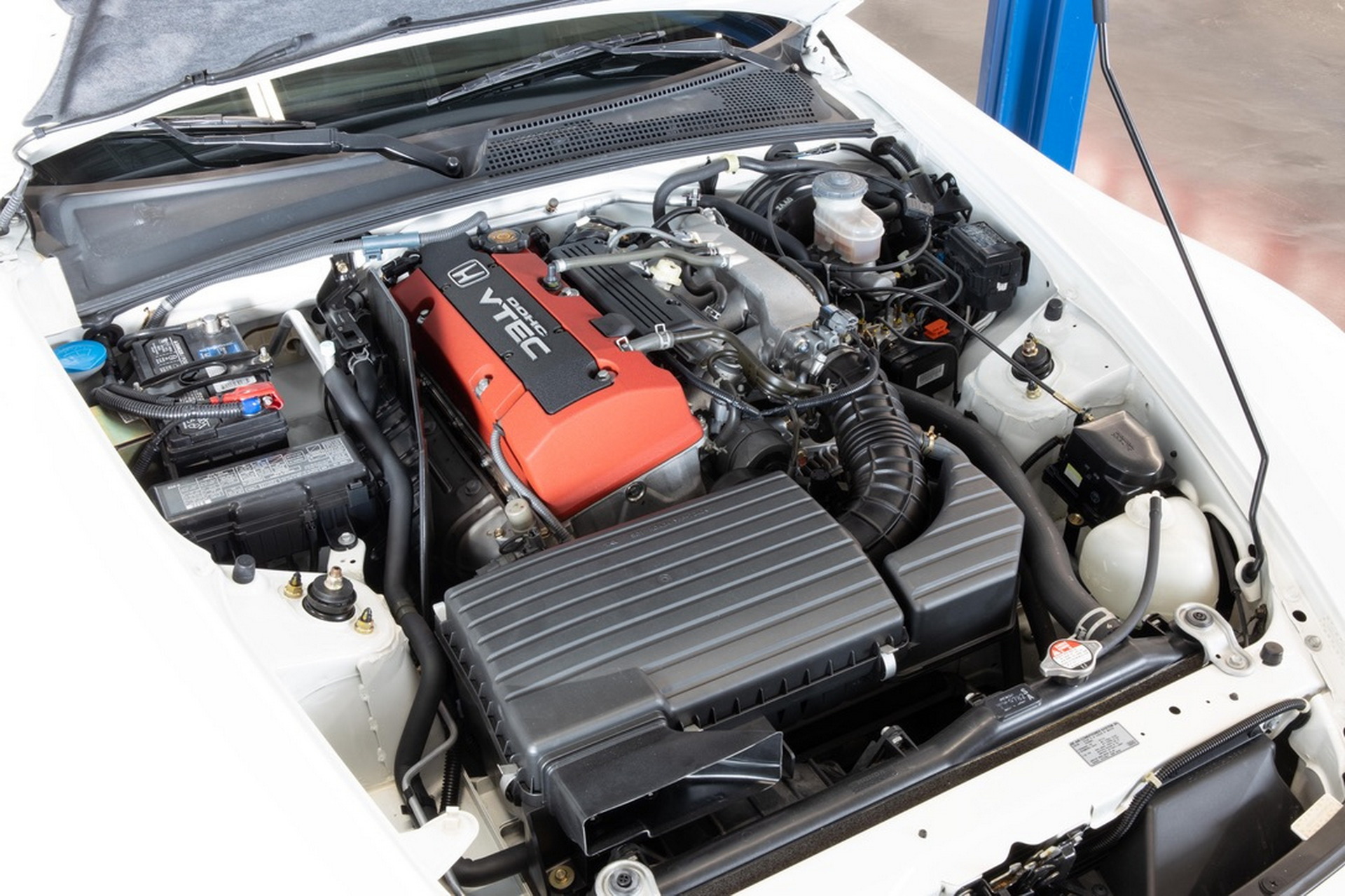 Onto the mechanicals, powering the S2000 is a 2.0L VTEC inline-four. That engine was originally rated at 240 horsepower and 153 lb-ft (207 Nm) of torque, and it sent that power to the rear wheels through a six-speed manual transmission that’s a pure joy to row. The car also comes with a factory limited-slip differential, and it recently had its tires replaced.